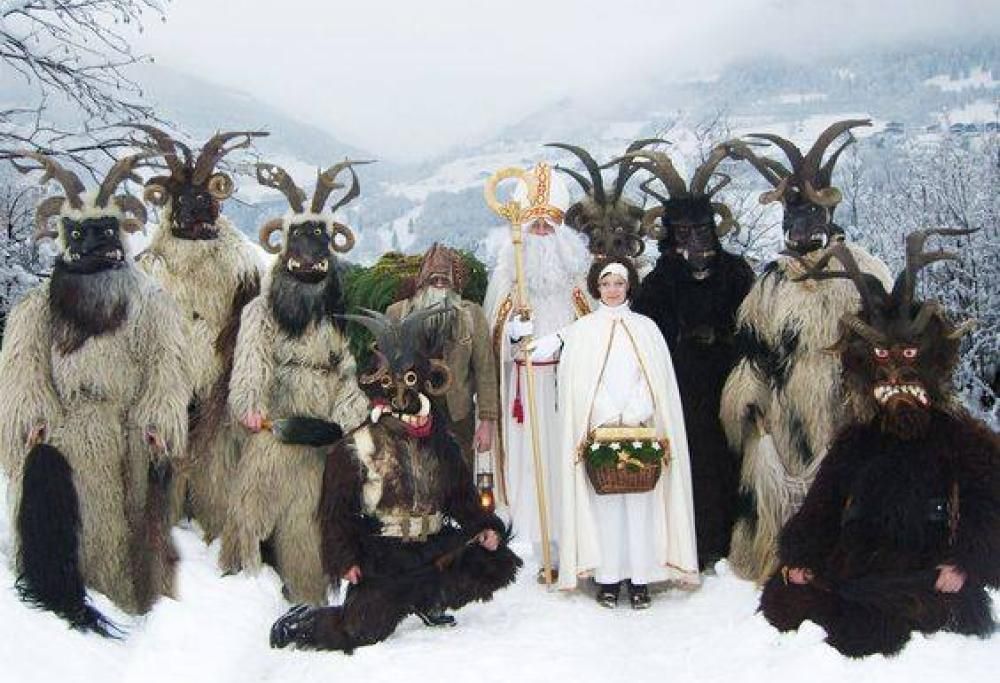 Decisamente austera invece la tradizione natalizia austriaca, che vede come protagonista un mostro di nome Krampus. Si tratta di una creatura demoniaca che gira per la città spaventando i bambini cattivi. Krampus è l’alter ego malvagio di San Nicola e secondo la tradizione se San Nicola regala doni a coloro che sono stati bravi, Krampus si occupa invece di quelli cattivi, terrorizzandoli con campane e smorfie.