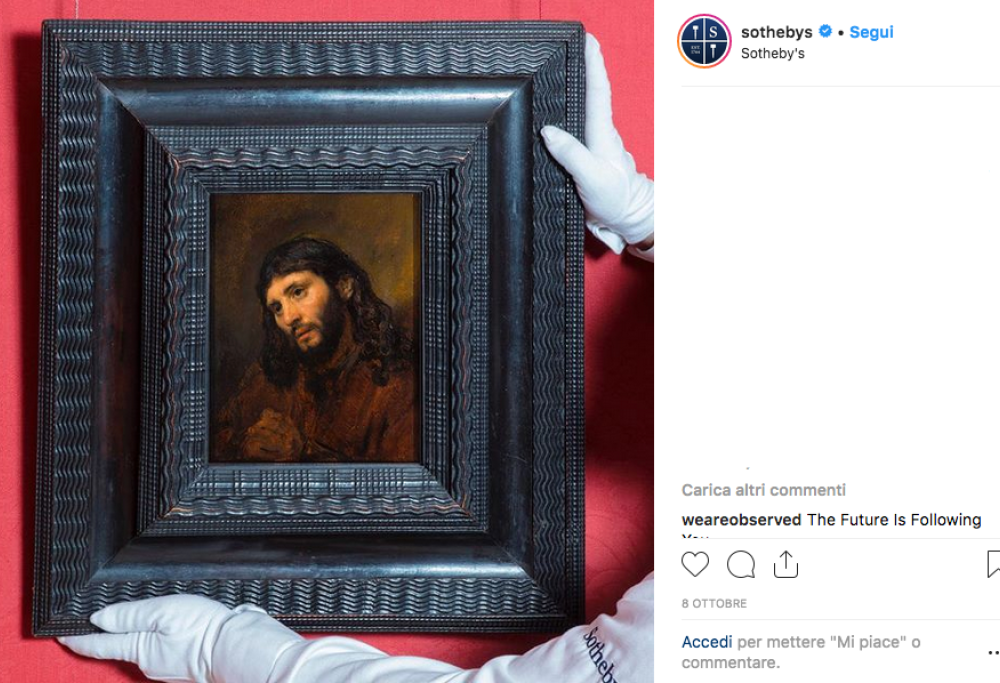 Sotheby’s mette all’asta un quadro di Rembrandt, e subito si accende l’interesse. Per il valore dell’artista, naturalmente. Perché il quadro in questione, “Studio di una testa e mani giunte di un giovane nei panni di Cristo in preghiera”, è stato a lungo in una collezione privata, e non tornava sul mercato da 60 anni. Infine, perché l’opera riporta su un angolo delle impronte digitali. Che siano quelle di Rembrandt stesse? Quel che si ipotizza infatti è che Rembrandt avesse dipinto l’opera, strato dopo strato di pittura, e poi avesse preso la tela per spostarla, non accorgendosi che le pennellate fossero ancora fresche.