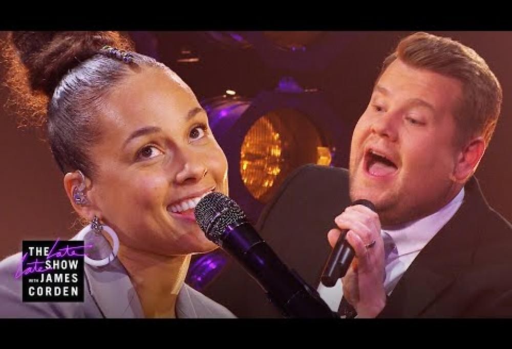 Nella versione di Alicia Keys e James Corden, Alicia chiede consigli su come comportarsi presentando i Grammy a Corden, che per due volte ha fatto gli onori di casa alla cerimonia.