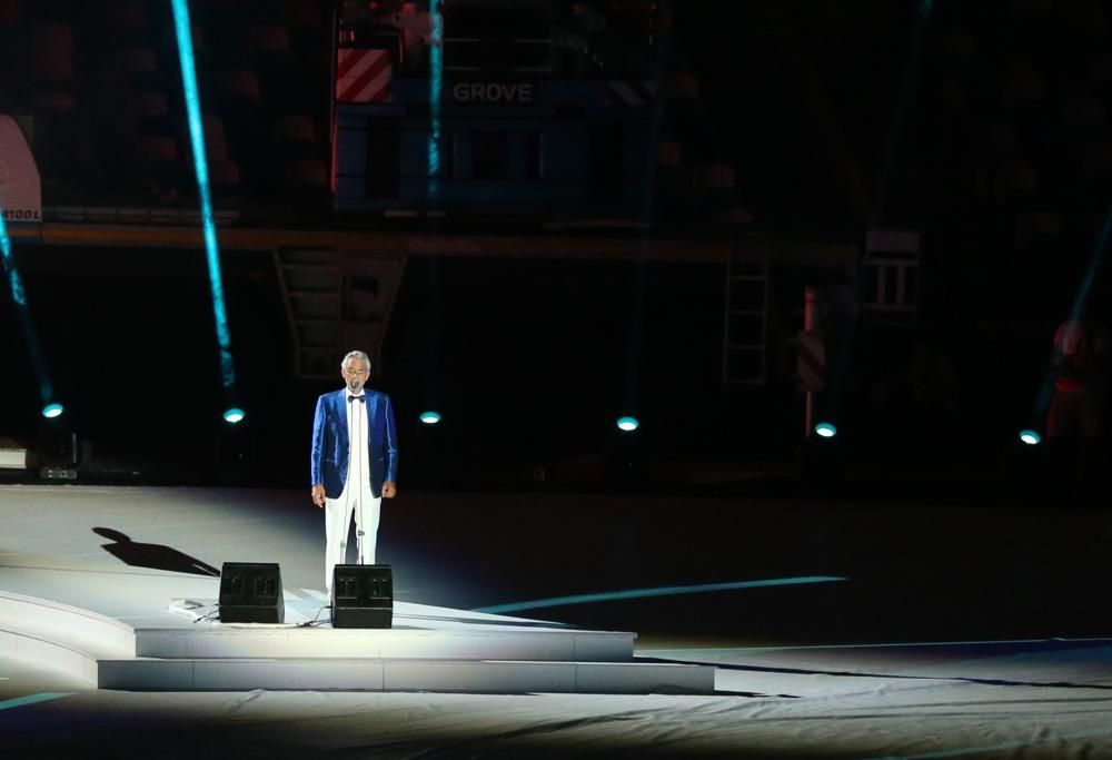 Bocelli era accompagnato dai 100 elementi dell’orchestra del Teatro Verdi e ha cantato il classico partenopeo “Funiculì Funiculà”, per concludere poi l’esibizione con una travolgente interpretazione di “Nessun dorma“, dalla Turandot di Puccini.