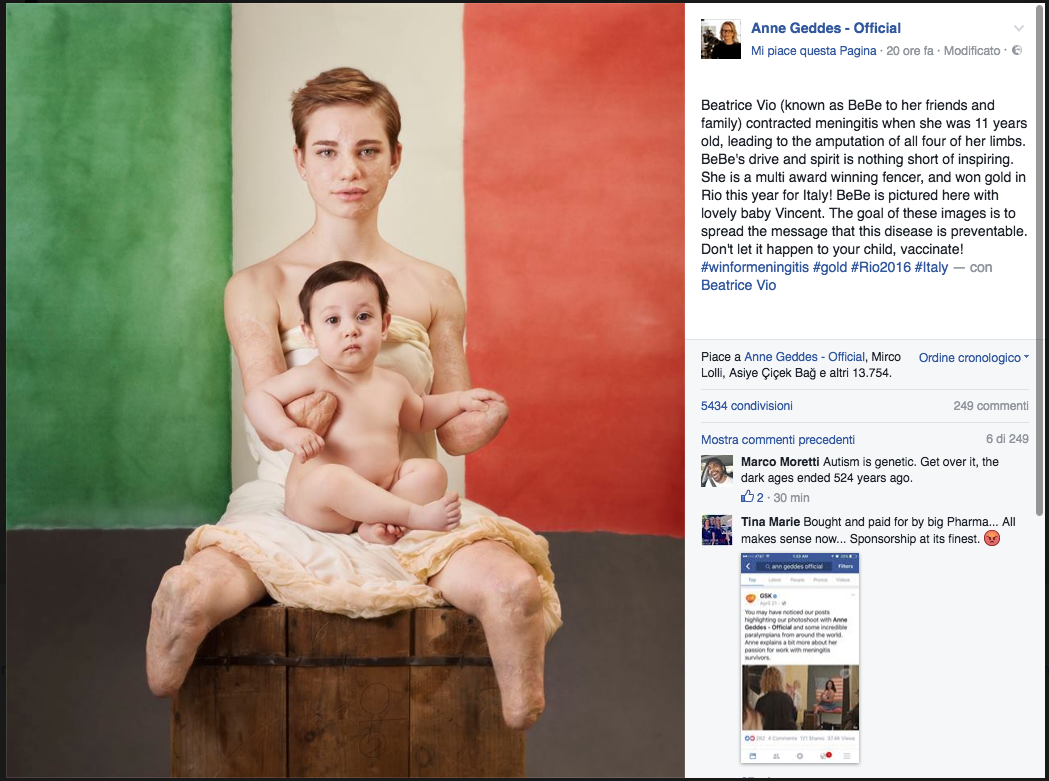 Bebe Vio nelle immagini di Anne Geddes per la campagna contro la meningite