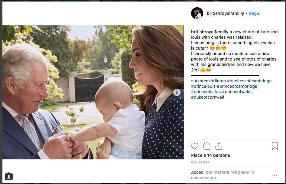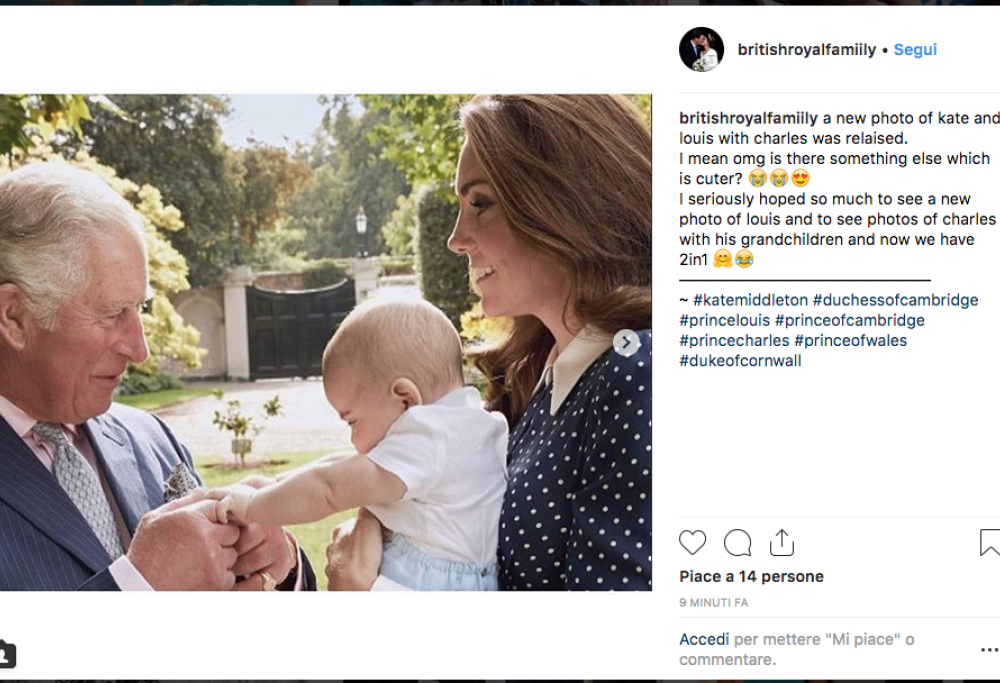 Il quotidiano britannico Daily Express ha pubblicato la foto in cui il Principe Louis, tenuto in braccio amorevolmente da mamma Kate, stringe le mani del nonno, il Principe Carlo. L’immagine ha immediatamente fatto il giro del web, tra like e commenti entusiastici.