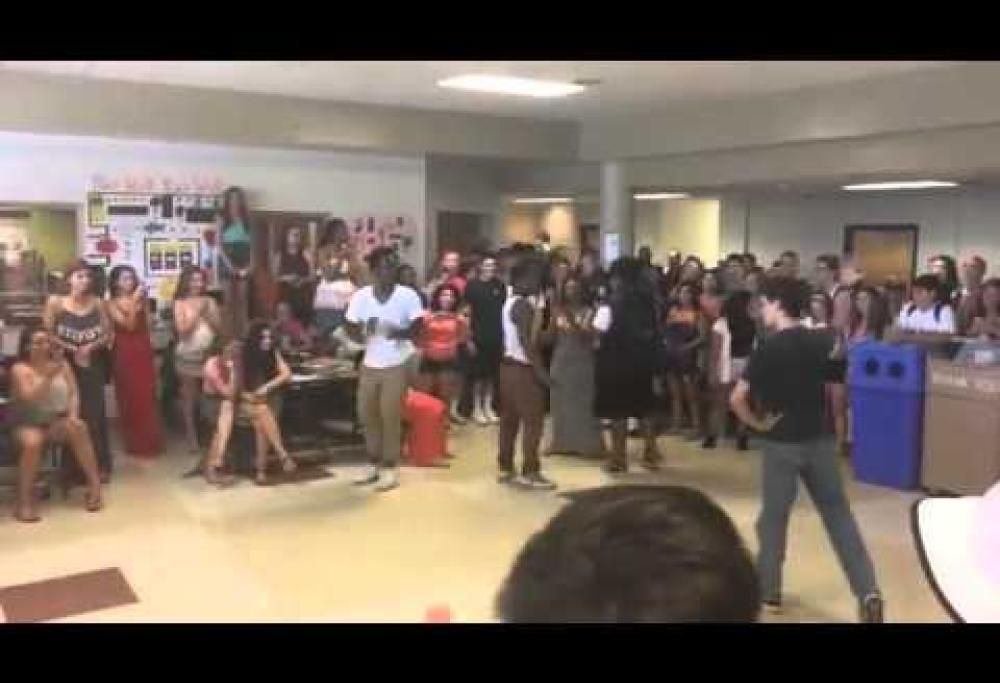 Sembra una scena tratta da una di quelle teen-comedy dove il classico sfigato, dato per perdente da tutti, alla fine la spunta e conquista la bella. In questa dance battle – la sfida a colpi di ballo, tipica dei licei americani – due ragazzi di colore sfidano un ragazzino bianco, provocandolo con le loro movenze ironiche e spaccone. Ma guardate come risponde lui…
