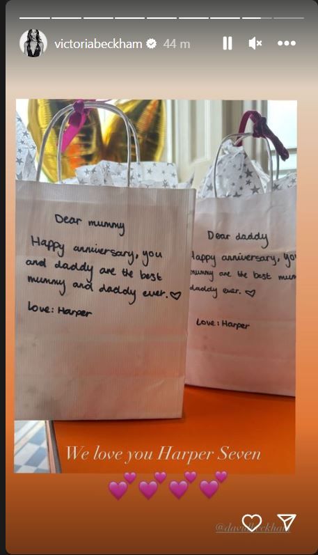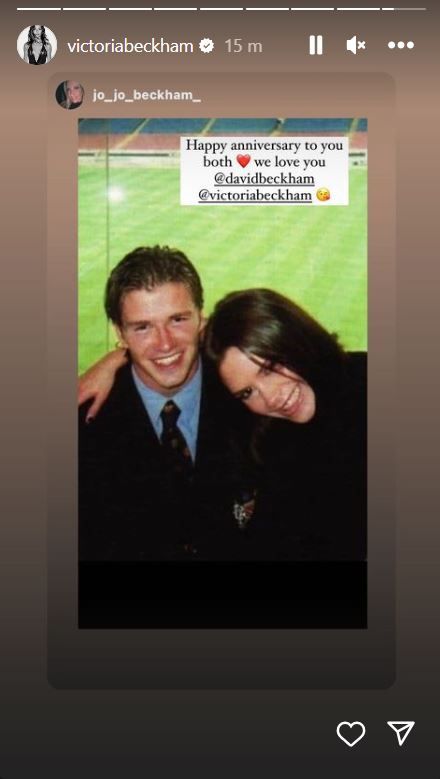 Beckham ha scritto: “In questo giorno 4.7.99 ❤️ 24 anni e non sentirli Alla migliore moglie, mamma e compagna di bevute (il più delle volte ) Buon anniversario, ti amo tantissimo❤️ @victoriabeckham @brooklynpeltzbeckham @romeobeckham @cruzbeckham #HarperSeven ❤️❤️❤️❤️”.
