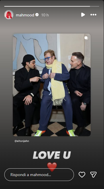 E’ quel che è accaduto anche durante l’ultima sfilata a Parigi di Jacquemus. Seduti accanto erano Elton John e Mahmood. Con loro, David Furnish, il marito di Elton.