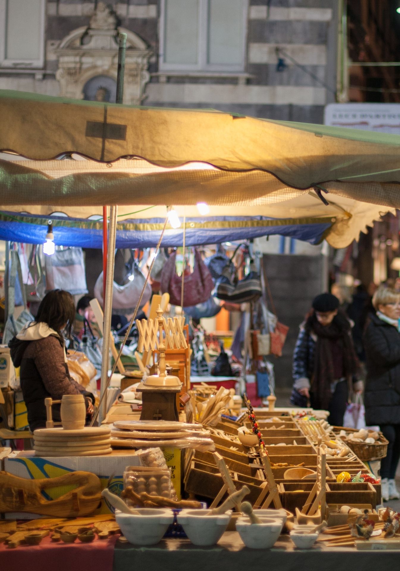 Non possono naturalmente mancare i mercatini ricchi dei prodotti tipici della tradizione ligure e oggetti d’artigianato. Dal 1 al 24 dicembre in piazza Matteotti è allestito il Mercatino di NataleDall’8 al 24 dicembre in Piazza Campetto si trova il Mercatino del Piccolo Artigianato, con oggetti unici realizzati a mano. Storia e beneficenza si incontrano in piazza Piccapietra, dal 1 al 23 dicembre, con il Mercatino di San Nicola, l’unico in Italia gestito da una Onlus, tra musica, tradizione, cibo e intrattenimento. Al Porto Antico, dal 7 al 22 dicembre, Natalidea è un villaggio natalizio, fatto di casette in legno ricche di idee regalo e prelibatezze
