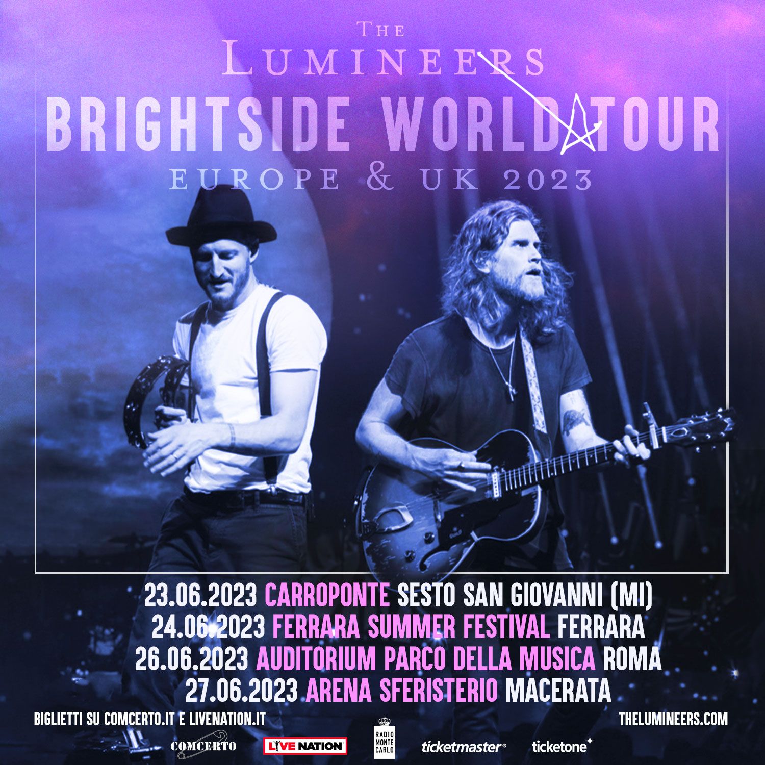 The Lumineers sono Wesley Schultz (voce e chitarra) e Jeremiah Fraites (batteria, percussioni, pianoforte). La band si è formata nel 2005 e vanta ben 21 successi al primo posto nelle classifiche radiofoniche di tutto il mondo. I Lumineers sono anche un colosso dei live.