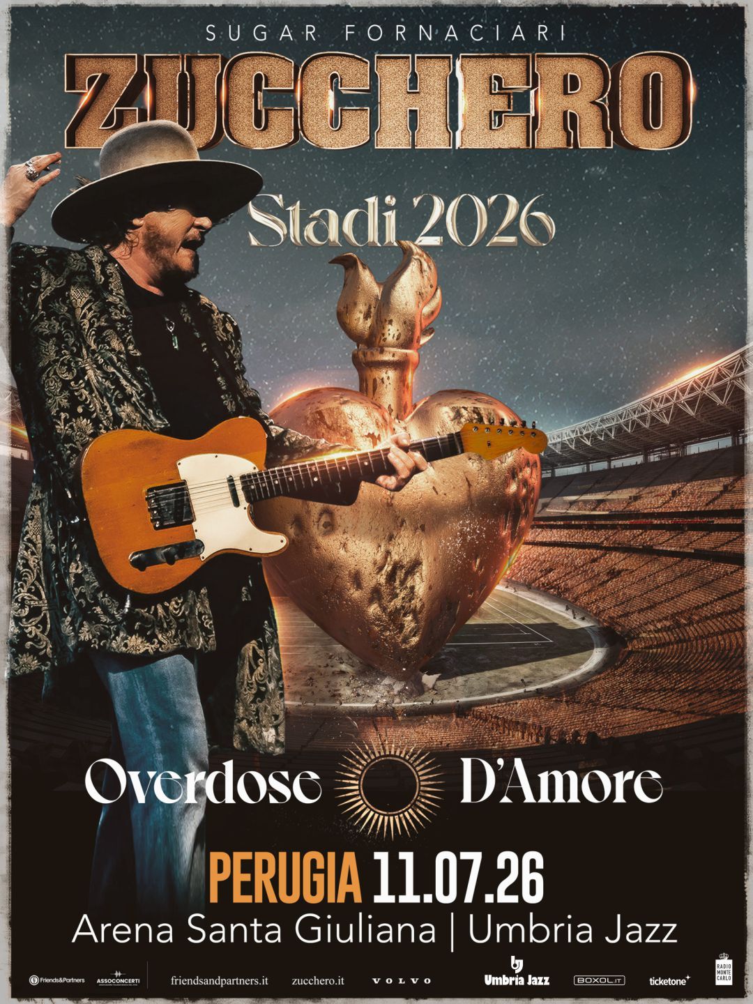 Appuntamento a Perugia, all’Arena Santa Giuliana, l’11 luglio 2026: Zucchero sarà ospite di Umbria Jazz con la sua voce inconfondibile e unica e il suo repertorio ricco di brani che emozionano. Con l’artista, la sua band straordinaria da sempre composta da grandissimi professionisti internazionali.