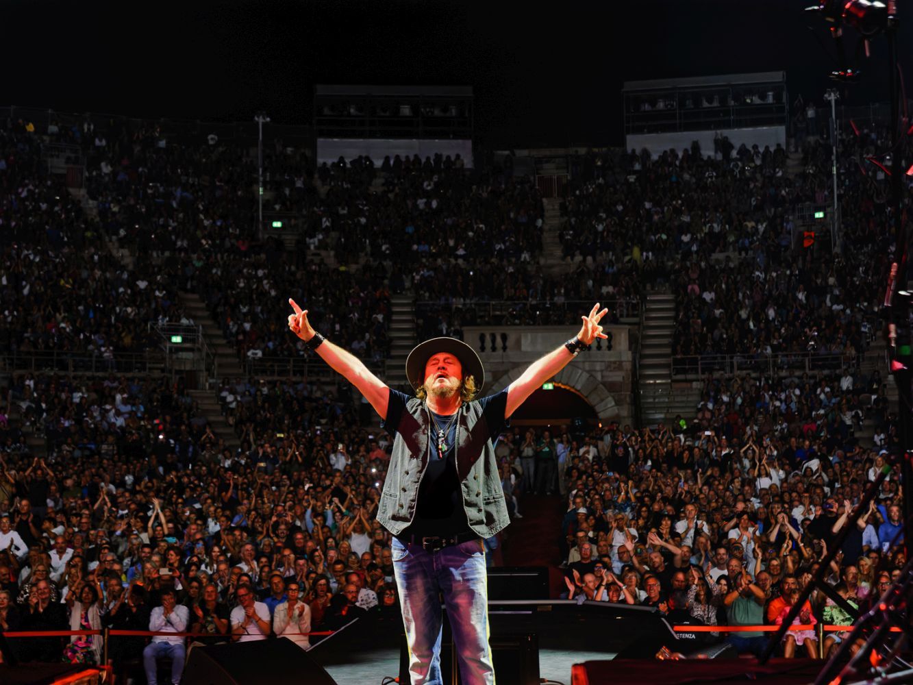 Zucchero porterà all’Arena Santa Giuliana un’overdose di musica tutta suonata dal vivo e di pura energia. Sul palco anche la fedele super band composta da Polo Jones (Musical director, bass), Kat Dyson (guitars, bvs), Peter Vettese (hammond, piano and synth), Mario Schilirò (guitars), Adriano Molinari (drums), Nicola Peruch (keyboards), Monica Mz Carter (drums, percussions), James Thompson (horns, bvs), Lazaro Amauri Oviedo Dilout (horns), Carlos Minoso (horns) e Oma Jali (backing vocals).