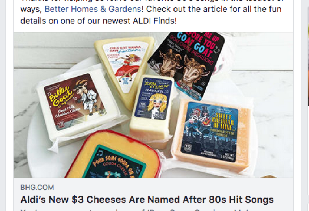La catena di supermercati Aldi ha messo in vendita (solo negli Stati Uniti, però) sei formaggi a edizione limitata, battezzati ispirandosi a canzoni celebri degli Anni Ottanta.