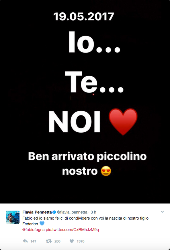 Flavia Pennetta ha annunciato con tweet festoso la nascita del suo primo figlio, il piccolo Federico. Il felice papà è Fabio Fognini. La coppia si era sposata la scorsa estate a Ostuni. Il bambino è nato a Barcellona.