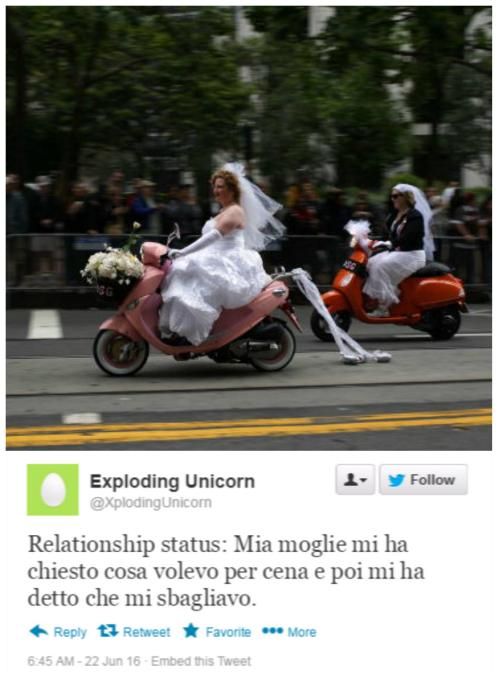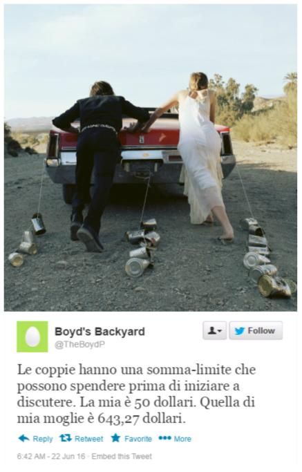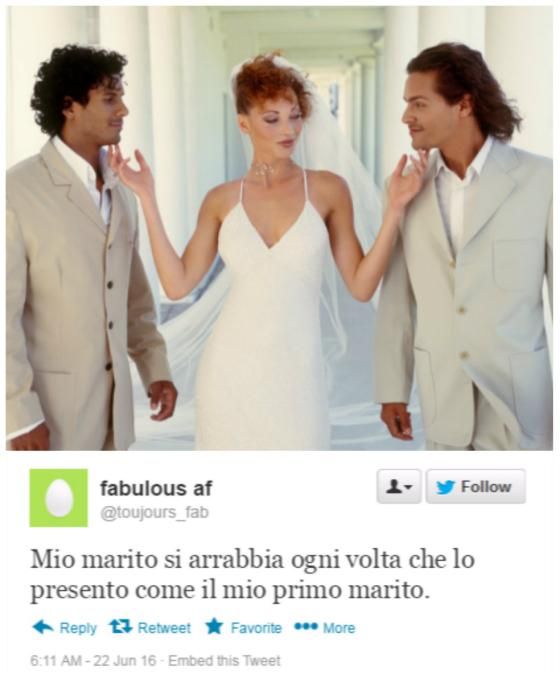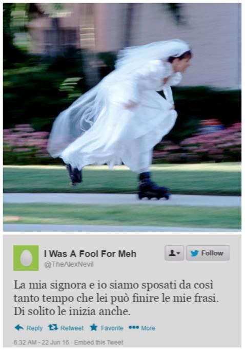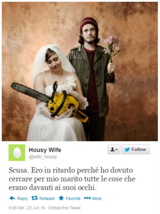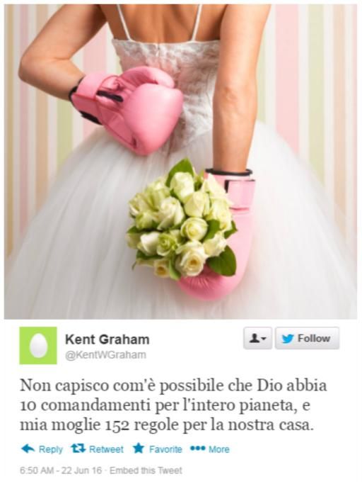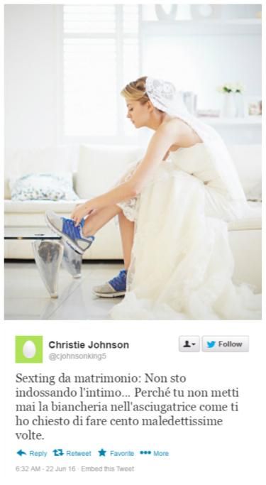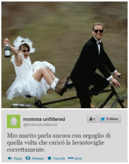 Date un’occhiata a questi 10 tweet esilaranti sul matrimonio: dalle immancabili dispute sulla lavatrice al sexting post-matrimoniale, passando per quella volta che lui si prende un raffreddore e sembra debba morire.