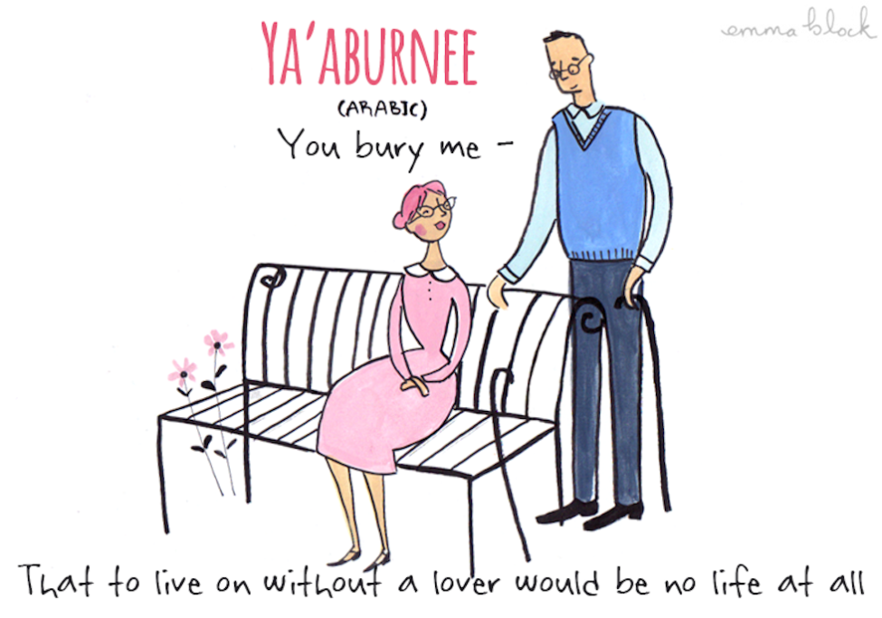 L’artista britannica Emma Block ha illustrato 28 parole o espressioni d’amore che esistono in una certa lingua e sono intraducibili in altre. Ci sono parole bantu, rumene, inuit. Parole per l’affetto disinteressato, le effusioni, le promesse di amore eterno; ma anche parole per descrivere i finti litigi tra innamorati, o il desiderio di essere seppelliti con la persona amata. Se è vero che dire una cosa significa farla esistere, preparatevi ad arricchire il vostro lessico amoroso.