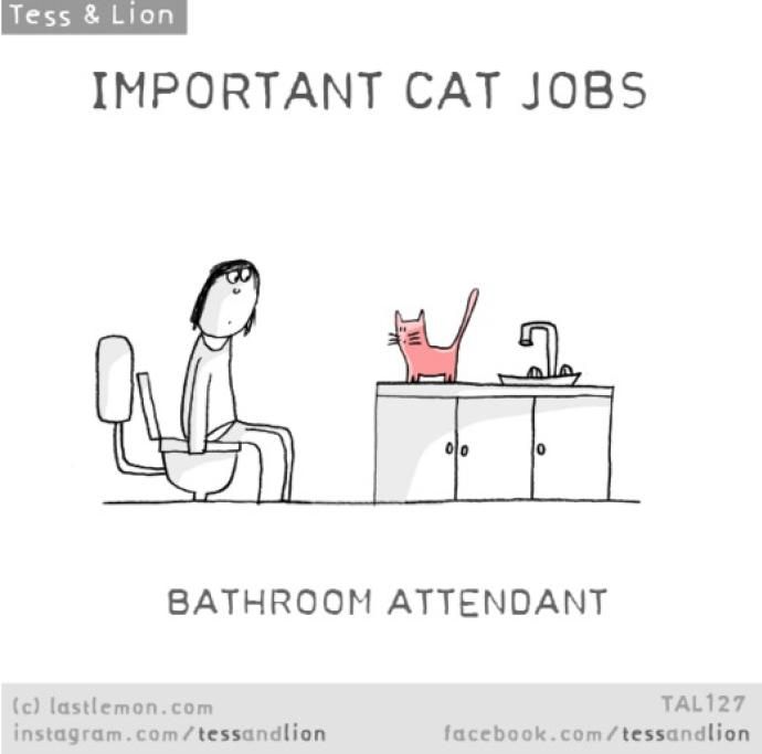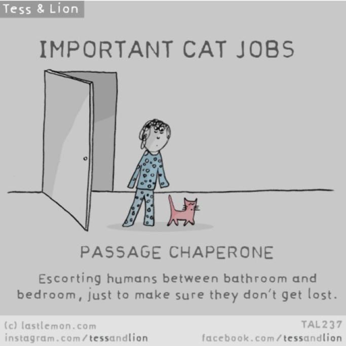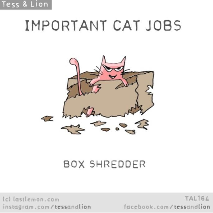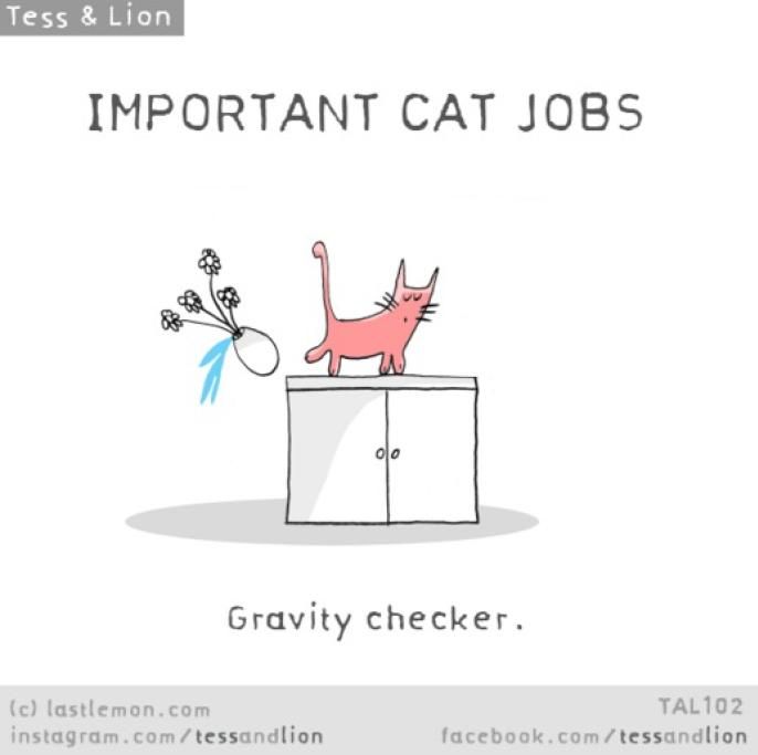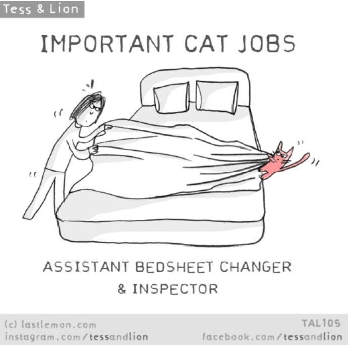 “Voi umani non siete consapevoli di cosa noi gatti facciamo tutti i giorni per voi. Ve lo dico, facciamo davvero tanto, una miriade di lavori fondamentali che passano inosservati. Siamo lì, dietro le quinte, giorno dopo giorno, senza lamentarci”.