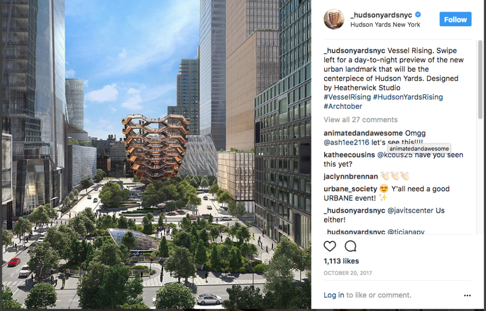 Una struttura avveniristica che sarà inaugurata nell’autunno 2018 a New York, nella zona di Hudson Yards, soggetta a recupero edilizio. Posta al centro dei giardini pubblici, sarà composta da 154 piani di scale che si intersecano, per 45 metri di altezza. I visitatori possono salire fino in cima e ammirare a ogni piano le diverse prospettive sul panorama sottostante.