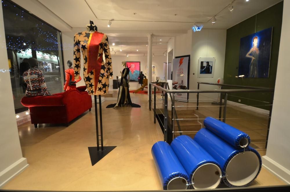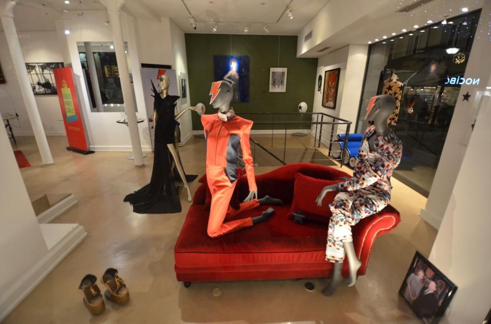 La mostra espone più di trenta opere, firmate da ventitré artisti contemporanei. Solo per citare qualche nome, il maestro giapponese Chemi Akutami presenta il Kimono Stardust; David Shilling, maestro della cappelleria moderna, propone alcune delle sue più strabilianti creazioni: Markus Klinko, rinomato fotografo, ha messo a disposizione i suoi scatti di Bowie. Non mancano i gioielli ispirati al musicista (di Natali De Lyrik), un’opera di James Cochran, che ha creato il tributo ufficiale a David Bowie a Brixton e le suggestive immagini di Gil Zetbase, celebre per i suoi scatti di pop-art, e del noto illustratore, direttore artistico, grafico e fotografo di moda Hiroyuki Kikuchi. Esposta anche un’opera dalla collezione privata di Radio Monte Carlo Italia dei DORMICE, il gruppo formato a Vienna nel 1999 dai tre artisti Dougal Graham, Heinrich Nicolaus e Sawan Yawnghwe.