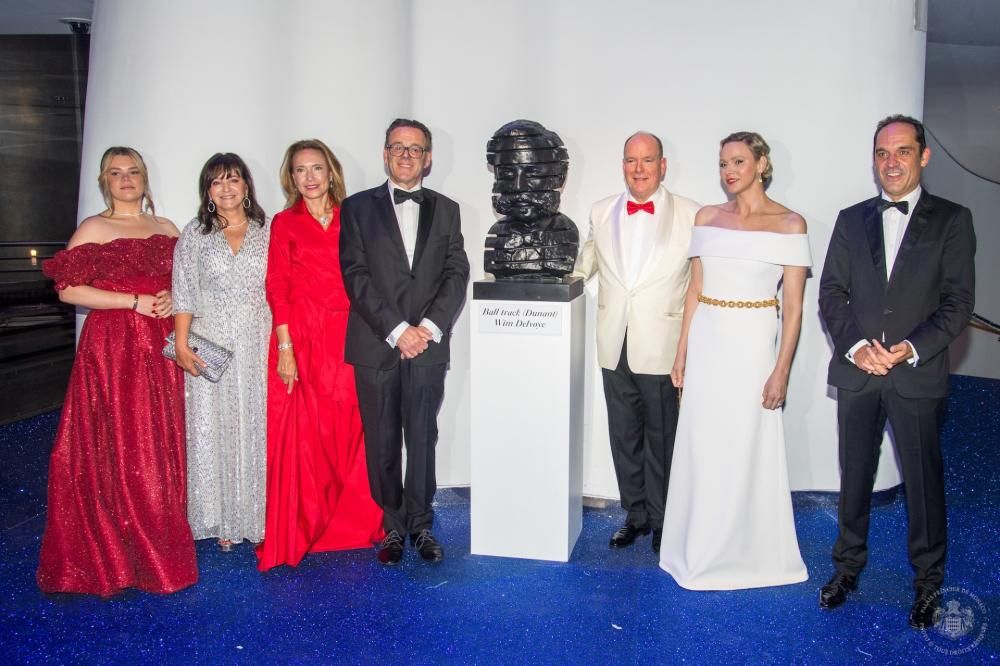 Quest’anno, l’opera d’arte dedicata alla Croce Rossa Monegasca è stata realizzata dall’artista belga Wim Delvoye, presente al gala, che ha reinterpretato in modo molto personale Henri Dunant, umanista, imprenditore e filantropo svizzero, premio Nobel per la pace nel 1901 per aver fondato il movimento della Croce Rossa. Si tratta di scultura in mezzo busto intitolata Ball Track (Dunant).
