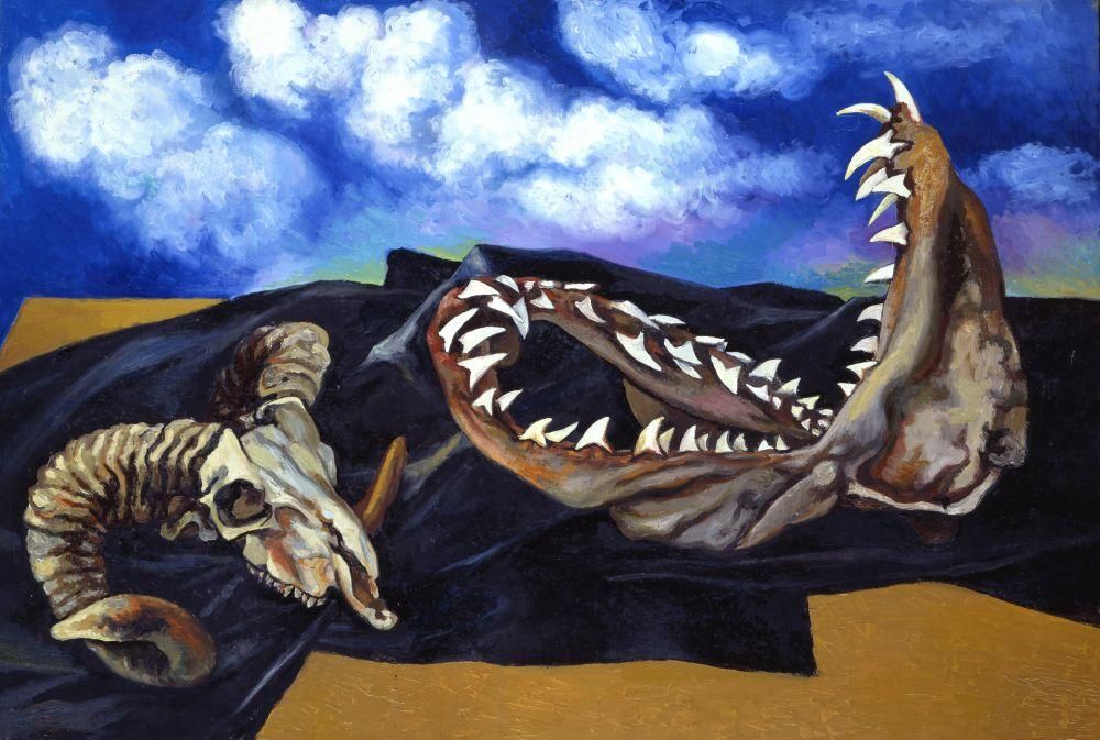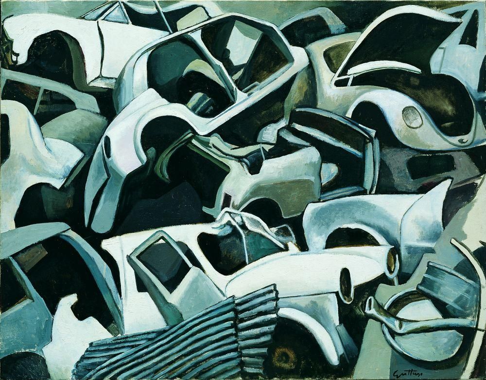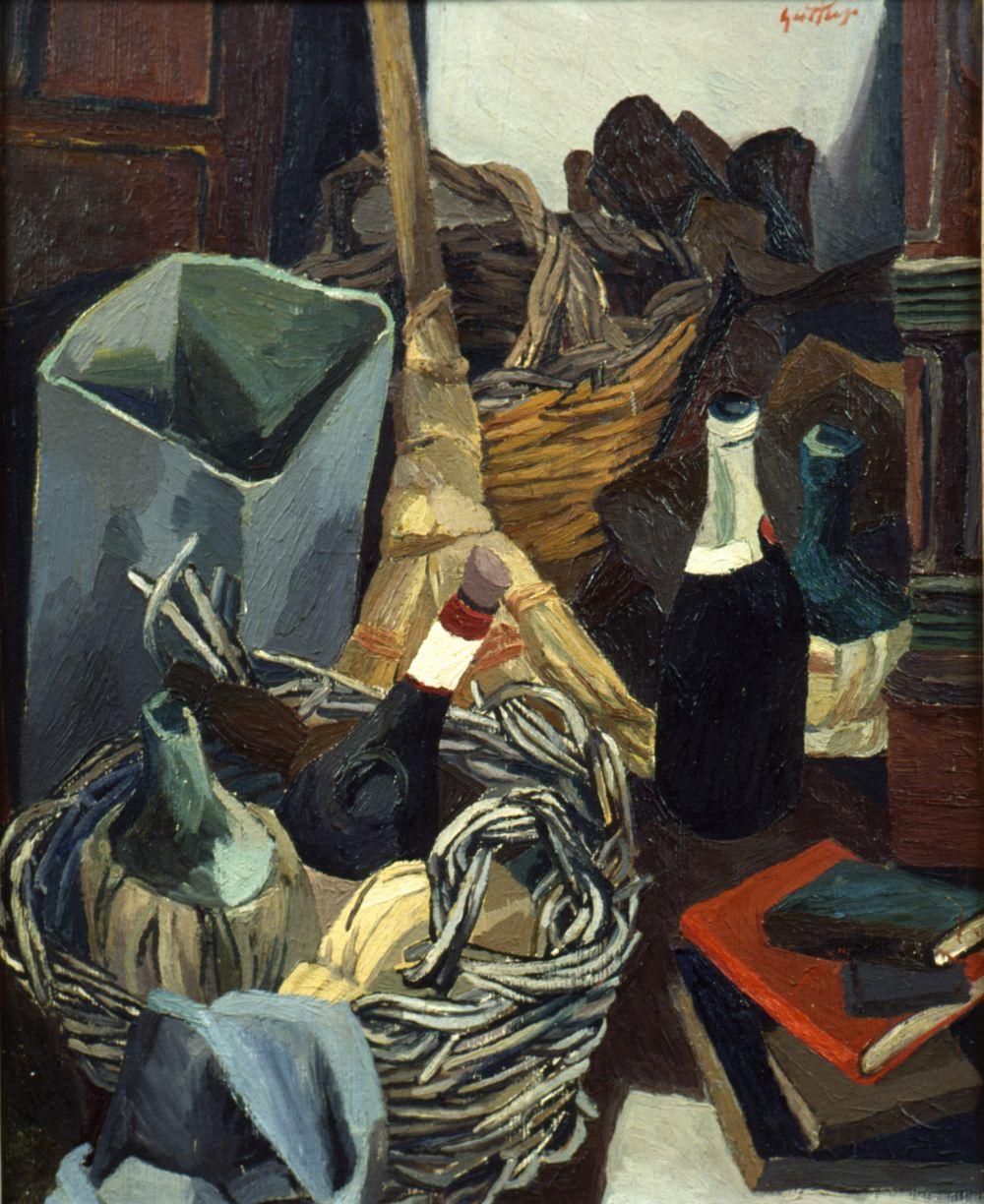 La mostra presenta dipinti degli Anni Trenta e Quaranta, che testimoniano la drammatica situazione esistenziale e politica della dittatura e della guerra; seguono dipinti che mostrano l’influenza della pittura post-cubista picassiana (Finestra, 1947, Bottiglia e barattolo, 1948) e il recupero della cultura artistica europea. E se, negli Anni Sessanta, i temi si fanno più meditativi, e ispirati al realismo e all’informale (Il Cestello, 1959, La Ciotola, 1960, e Natura morta con fornello elettrico, 1961), i due decenni successivi vedono nascere capolavori .che sono dense metafore del reale (Cimitero di macchine, 1978, Teschio e cravatte, Bucranio, mandibola e pescecane, 1984).