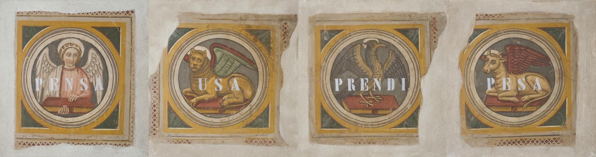 Tra paradossi visivi e concettuali e cortocircuiti interpretativi, lo spettatore viaggia in un mondo che è anche metafisico e letterario. Agnetti, che aveva iniziato componendo poesie e sperimentando la pittura informale, aveva vissuto tra l’Italia e il Sud America, con esperienze in Qatar, in Norvegia e a New York. Ricca e intensa la sua produzione artistica, che comprende anche numerosi saggi teorici e il romanzo Obsoleto, che inaugurò la collana Denarratori di Scheiwiller.