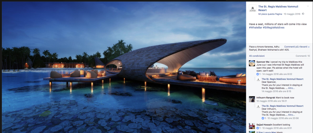 Ecco uno squalo che fa piacere incontrare! E’ infatti il bar del St Regis Maldives Vommuli Resort. A crearlo, dandogli la forma caratteristica di una mandibola di squalo, è stato lo studio WOW Architects l Warner Wong Design Group, con sedi a Singapore e Londra. Con questo progetto, lo studio ha anche vinto lo SBID International Design Award.