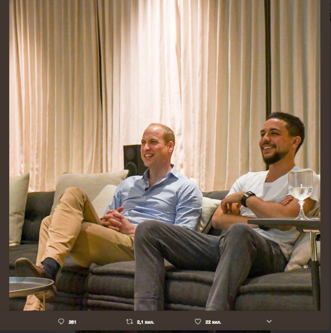 A far compagnia al Principe William durante la replica di Inghilterra-Panama, il principe ereditario di Giordania, Al-HJussein Bin Abdullah II. I due reali si sono gustati il match su maxischermo, al Beit Al Urdun Palace. Le foto sono state pubblicate dall’account Twitter ufficiale dei giovani reali inglesi, Kensington Palace, e hanno fatto il giro del mondo.