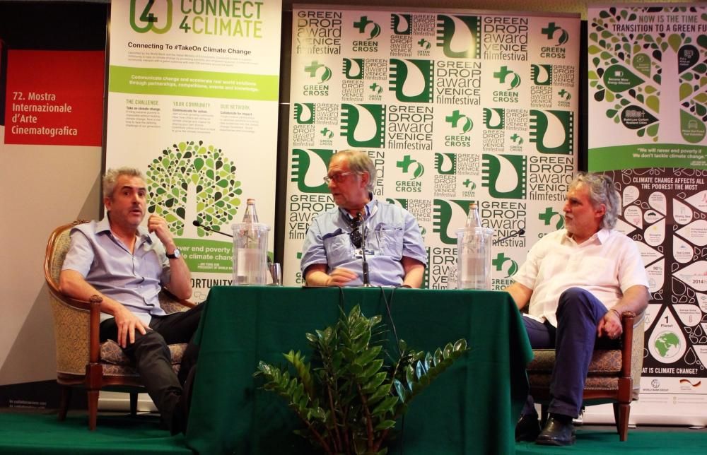 È seguito poi il dibattito tra Alfonso Cuarón, presidente della giuria della 72a Mostra del Cinema e il fratello Alfredo, scienziato esperto di cambiamenti climatici. Secondo il regista Cuarón «Dobbiamo cambiare completamente il modello economico globale». La giornata è poi proseguita affrontando il tema della sostenibilità cinematografica in Italia, con una tavola rotonda che ha fatto il punto sull’abbattimento delle emissioni ottenuto grazie ai film realizzati secondo i disciplinari “green” EcoMuvi, Edison Green Movie e Green Ciak. Tra le pellicole ultimamente realizzate in omaggio a questi principi vanno ricordate “Il capitale umano” di Paolo Virzì, “Fraulein” di Caterina Carone e “Infernet” di Giuseppe Ferlito.