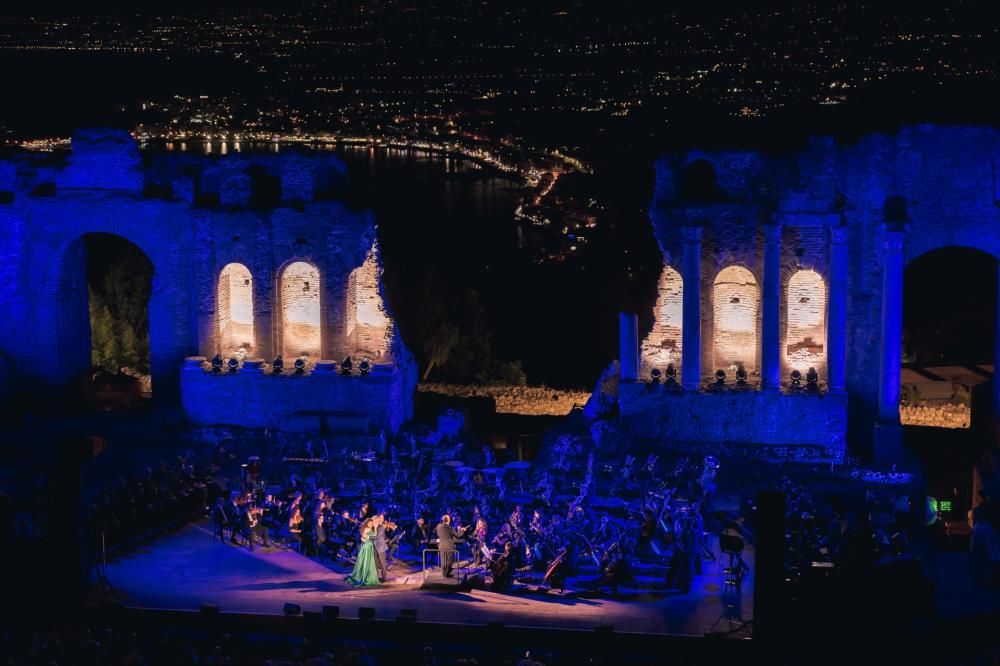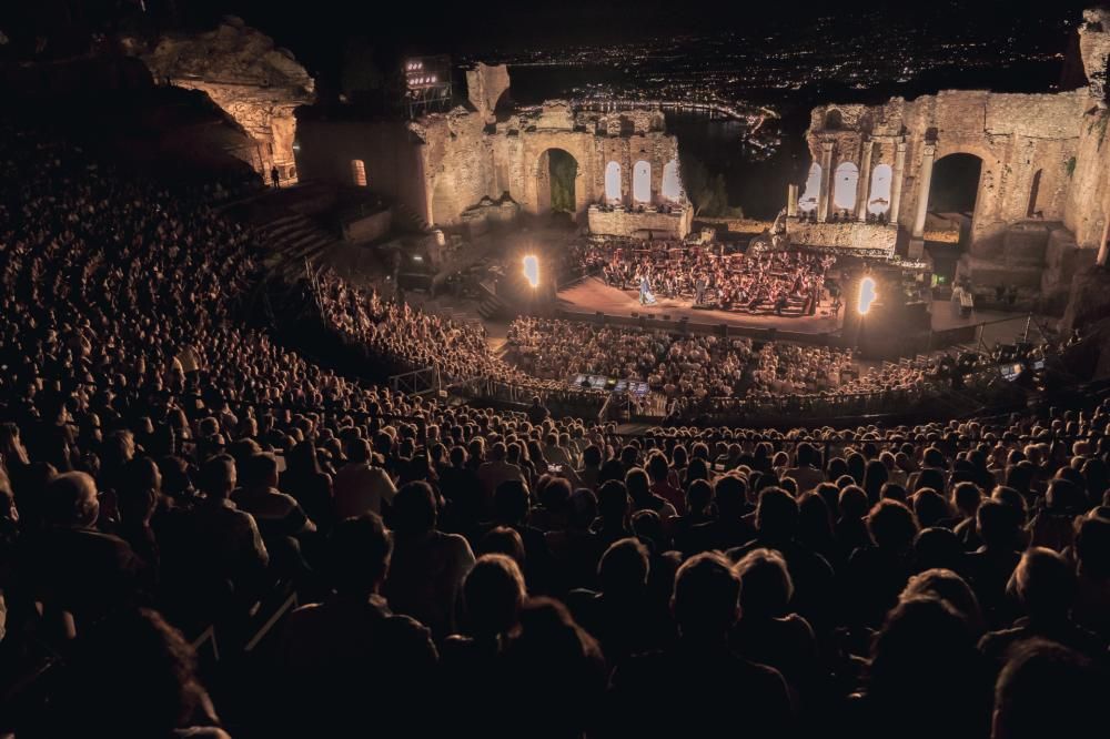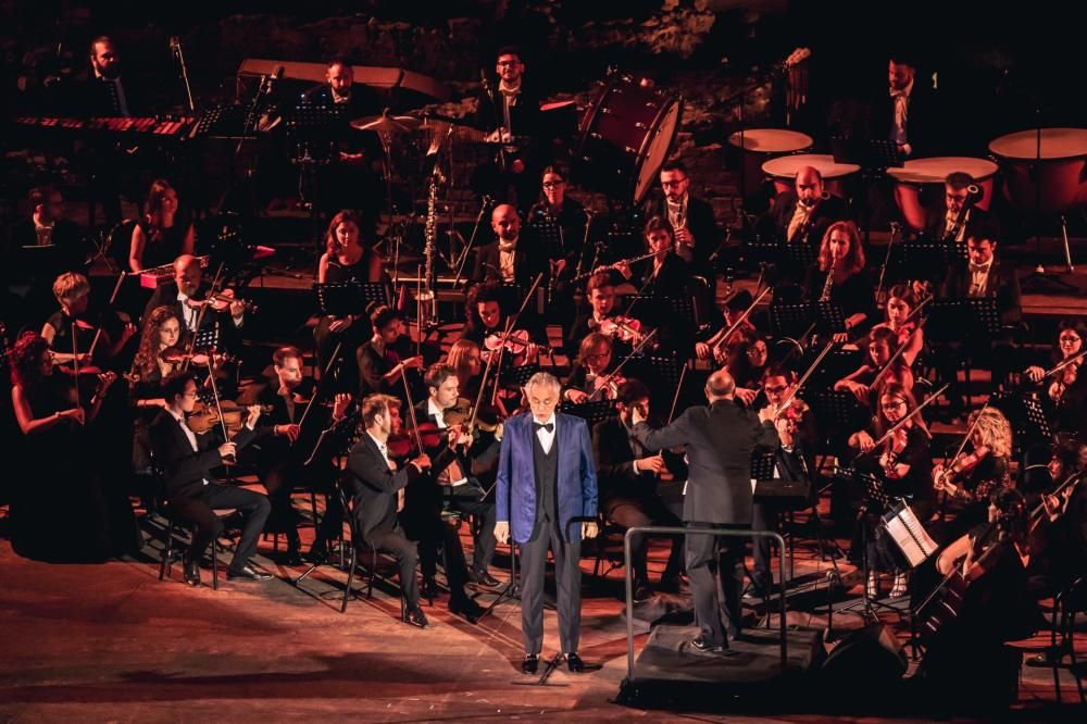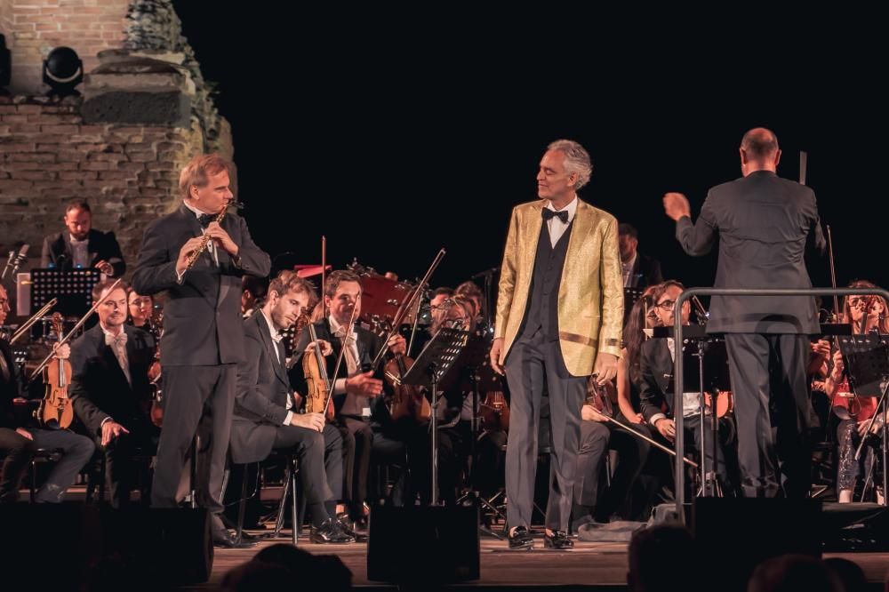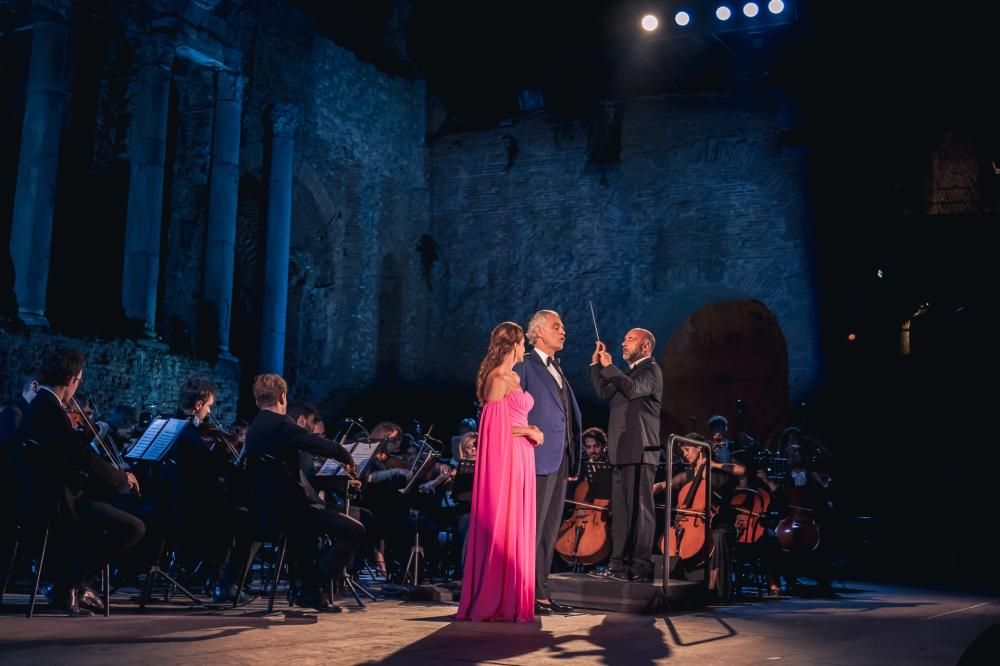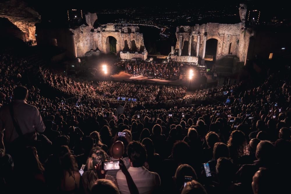 Andrea Bocelli si è esibito sul palco del Teatro Antico d Taormina. Si è trattato di un doppio sold out davanti a un pubblico internazionale, proveniente da 34 paesi stranieri, dagli USA al Regno Unito, dalla Turchia alla Spagna, dall’ Argentina all’Australia, dal Messico al Portogallo.