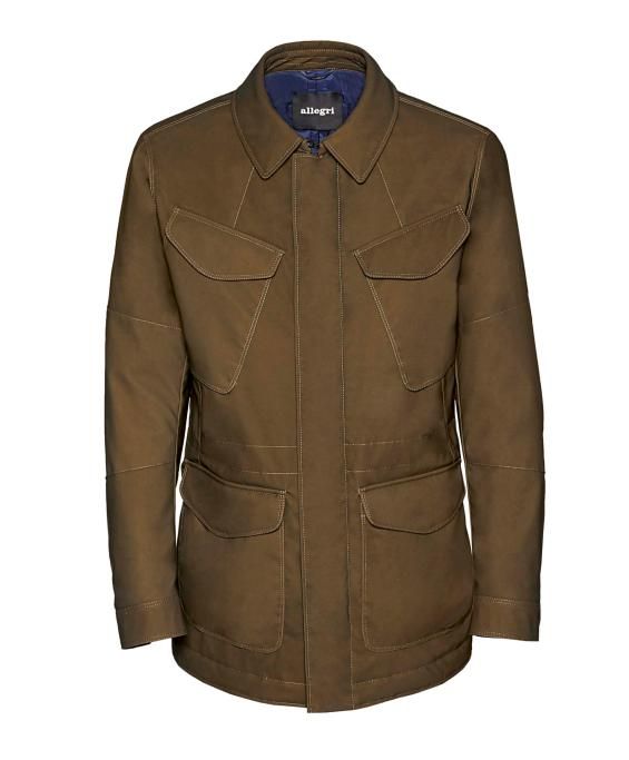 Il trench, archetipo dell’impermeabile, nacque nel corso della Prima guerra mondiale per le dure condizioni delle trincee di cui porta il nome. Per ispirarsi all’originale deve essere lungo e avere manica a giro, spalline e cintura con ganci. I cappotti a doppiopetto con martingala sono tutti figli e nipoti del guard coat, chiamato così perché usato dalle guardie del palazzo reale inglese. Il duffle coat o montgomery, di immortale linearità, fu introdotto dalla Royal Navy nella Seconda guerra mondiale e ha dato luogo a infinite rivisitazioni. I più belli sono sfoderati e in panno cardato rigido, praticamente impermeabile. Resta invece immutabile e accessibile solo ai grandi appassionati il British warm, cappotto a doppiopetto con spalline tipico per il colore caki detto dark drab, l’assenza di martingala e piegoni posteriori e l’impenetrabile tessuto melton da almeno un chilo al metro.