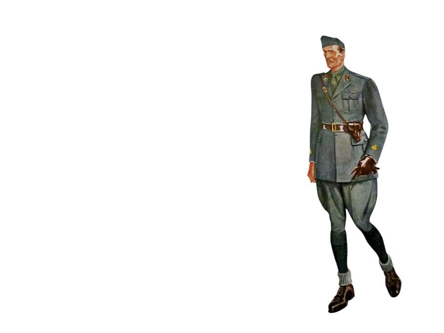 La field jacket non va confusa con la safari jacket o sahariana, che nasce nelle truppe coloniali inglesi e in vita è stretta da una cintura. Una field jacket filologica, inoltre, dovrebbe essere realizzata con tessuti ad armatura diagonale, mentre la sahariana può anche essere in una più traspirante tela. I casi di migrazione dai campi di battaglia alle strade di città non finiscono qui, ma anche se riuscissi a evidenziarli tutti non basterebbero i singoli casi a chiarire lo spessore di un fenomeno complessivo che ha avuto conseguenze profonde ed è ancora in corso. L’influenza dell’abbigliamento militare su quello civile si manifesta su una scala che va al di là delle singole fogge per coinvolgere l’intero atteggiamento nei confronti dell’estetica tradizionale. Il concetto che le moderne nazioni hanno sviluppato della guerra e dei corpi armati ha determinato una radicale evoluzione delle divise, che a loro volta e per diverse vie hanno innescato mutazioni globali nei materiali e nel modo di vestire. Il soldato moderno è uno specialista, il cui costo in termini di addestramento giustifica un’attrezzatura curata sotto ogni profilo. Mentre un tempo il meglio era destinato agli ufficiali, da quando gli stivali sul terreno li mettono solo le truppe di élite il meglio è destinato a esse, che peraltro non sanno più che farsene degli stivali.