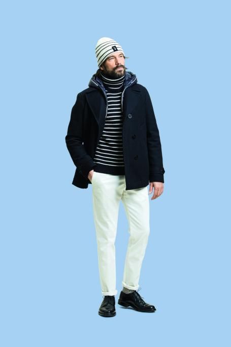Buona parte delle fogge canoniche maschili proviene dalla guerra, in particolar modo i soprabiti e quasi tutti quei cappotti importanti che la lingua inglese raggruppa sotto il nome di great coats. Il modello più antico è forse il peacoat, giaccone che risale alla marina olandese degli inizi del XVIII secolo. Pensato per il lavoro in coperta di bassa forza e sottoufficiali, deve essere semplice, ampio e corto, per favorire i movimenti nelle manovre alle vele. Perché sappia di salsedine e di avventura un peacoat deve essere in melton blue navy e avere un petto doppio e ben accavallato, ampio collo a doppio uso, tasche in petto a fare da scaldamani e grandi bottoni scuri che possano essere manovrati anche da arti intirizziti. I bottoni d’oro, che distinguono gli ufficiali, sono riservati al più lungo e severo bridge coat.