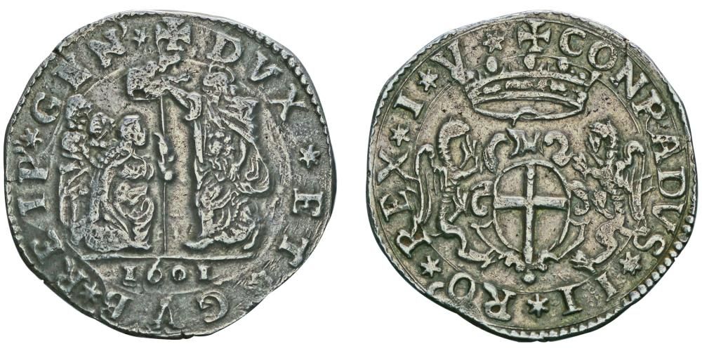 Dalle 10 del mattino saranno battute 849 monete, tra le quali spiccano una collezione di monete romane, in cui prevalgono gli aurei e i solidi, alcuni pezzi molto rari coniati durante l’era Napoleonica in Italia e poi esemplari dell’epoca barbarica, monete reali francesi e monete moderne francesi. Parecchi i lotti prestigiosi, come il lotto 573, con un prezzo di partenza di 5.000 euro, che comprende una moneta dei Dogi biennali (1528-1797), II fase 1541-1637 Ducatone «della Benedizione» (1601). Su un lato riporta la scritta DVX ET GVB REIP GEN 1601, raffigurante il Redentore che benedice il Doge in ginocchio, sul rovescio si legge la frase CONRADVS I I RO REX I V, con al centro uno scudo sorretto da due dragoni.