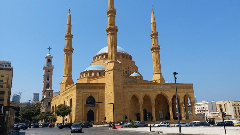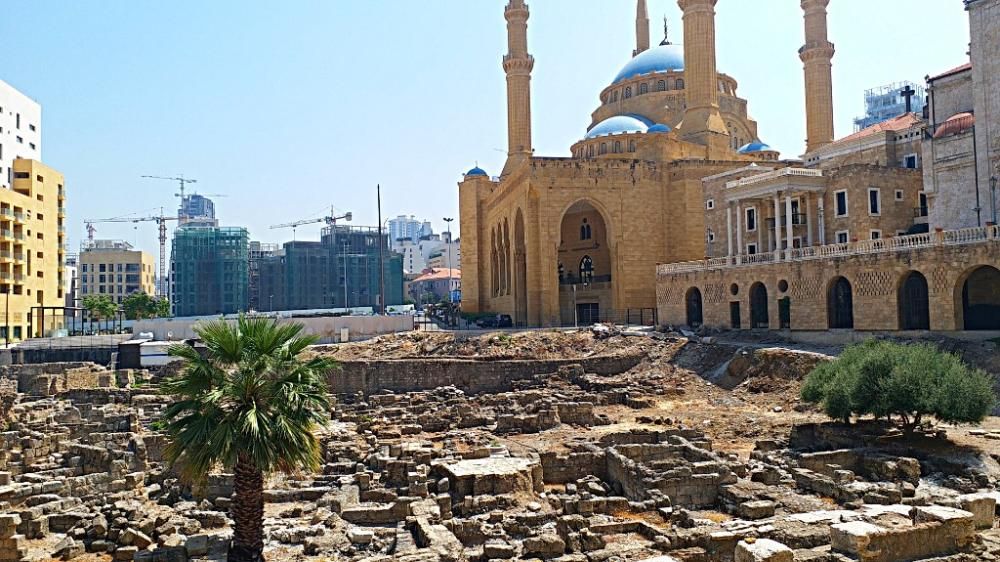 Cammino e arrivo in Piazza dei Martiri, assediata dal flusso continuo di auto e camion cisterna. La Mohammad Al-Amin Mosque svetta con i suoi minareti e le cupole turchesi. Si sente il muezzin e le campane delle chiese intorno suonare mezzogiorno. Nel raggio di 50 metri c’è la cattedrale cattolica di Sant’Elia, quella cristiano maronita di San Giorgio, una greco ortodossa e una armena. Questa è Beirut, con campanili e minareti, grattacieli nuovissimi e il vecchio cinema l’Oef sventrato e pieno di buchi di pallottole, di fronte alla Casa Gialla, il vecchio palazzo elegante completamente crivellato che era sulla Linea Verde, il confine tra le due Beirut.
