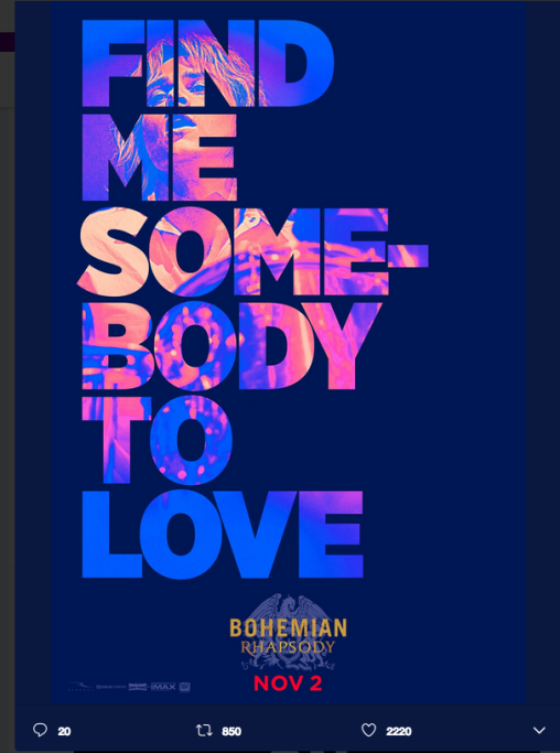 Cresce tra i fan l’attesa per “Bohemian Rhapsody“, il film dedicato ai Queen e a Freddie Mercury. Sono stati adesso pubblicati, suo social della casa di produzione della pellicola, i poster dedicati ai componenti della band, ciascuno accompagnato da un verso di una celebre canzone del gruppo.