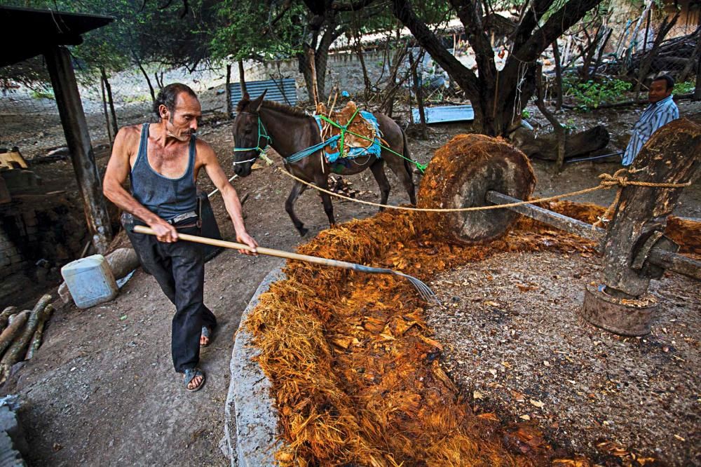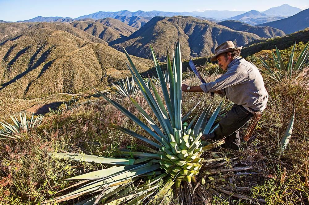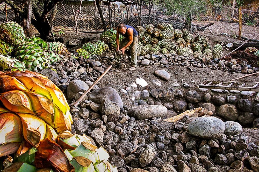 Il Mezcal è un distillato di agave, una pianta grassa a foglie spinose, come lo è anche la più conosciuta Tequila, ma se questa prevede soltanto l’uso di agave Tequilana Weber, detta anche agave azul o agave blu, proprio per il suo colore, per il Mezcal si utilizzano invece circa 30 specie diverse di agave, e la varietà più impiegata è l’Espadina, che dà vita a un Mezcal più erbaceo, secco e sapido a differenza di quello realizzato con Agave Tobala, più morbido dai sentori torbati. La sua lavorazione avviene in fosse scavate nel terreno, forni rudimentali, dove le pigne, i cuori della pianta di agave, sono cotte attraverso un fuoco alimentato da foglie e rami di legni resinosi. La cottura, protetta da pietre di fiume e residui di precedenti lavorazioni, dura per diversi giorni. La massa cotta è poi molita a pietra per liberare gli zuccheri, quindi il succo è raccolto in vasche di legno, chiamate palenquero, o in tini d’acciaio per dare avvio alla fermentazione, che dura dalle 36 alle 72 ore e la distillazione avviene in due passaggi: la prima produce lo xixi, con 20/25 gradi di alcool, la seconda ottiene il Mezcal, che arriva a 60 gradi e secondo le Normas Oficiales Mexicanas può essere prodotto in zone diverse rispetto a quelle della Tequila: a Oaxaca, dove si trova la maggior parte delle distillerie, ma anche a Guerrero, Durango e Tamaulipas. Il Mezcal ancestrale è prodotto fin dai tempi degli Aztechi, dai quali era considerato afrodisiaco. L’antica leggenda racconta della dea Mayatl che aveva sembianze di un’agave. Si dice che avesse 40mila seni con i quali nutriva i suoi sudditi tramite un liquido prezioso, chiamato appunto Mezcal. Un giorno la dea si accorse che nel suo cuore stava nascendo un essere vivente, un magnifico bruco. Questa presenza rese il suo corpo sensibile e propenso all’amore, tanto che la dea si innamorò di un giovane guerriero dalle spoglie mortali di nome Chag. Il giovane era però piuttosto timido con le donne e, accortosi dell’interesse della dea, svenne per l’emozione. La dea quindi gli offrì il suo più bel seno, dal quale si abbeverò con avidità di Mezcal: il magico liquido lo rese improvvisamente pieno di ardore. Chag chiese alla dea Mayatl di trasformarlo in dio per rendere possibile il loro amore. La dea donò al guerriero il bruco cresciuto nel suo cuore e, non appena mangiato, Chag si trasformò in una divinità immortale. Grazie a questo bruco e al prodigio da lui compiuto, amò la dea per sette giorni e sette notti.