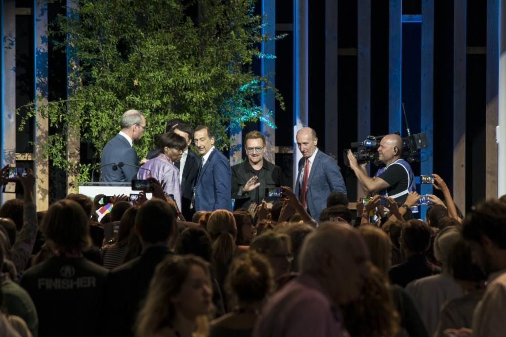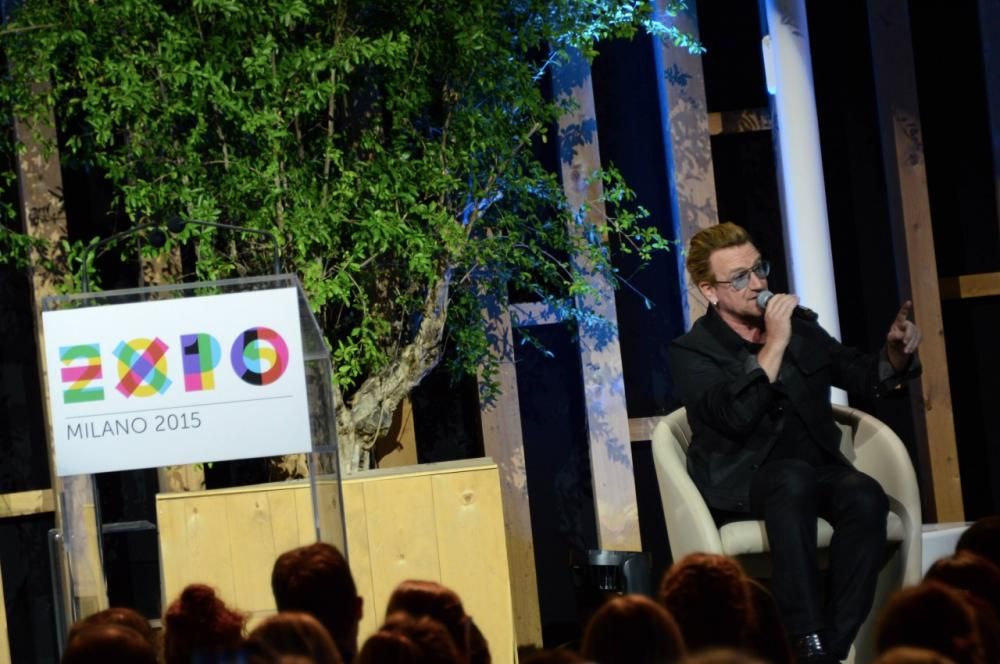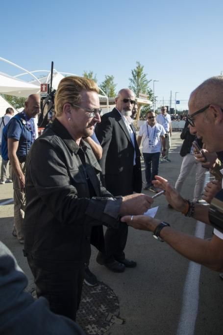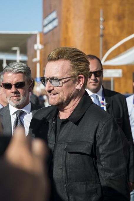 Bono ha visitato l’Expo di Milano domenica 6 settembre e ha anche incontrato il Presidente del Consiglio Matteo Renzi. Il musicista si trovava all’Expo per l’evento “It begins with me“, organizzato da Italia e Irlanda a sostegno del World Food Programme e la sua visita ha a dir poco entusiasmato i fan, accorsi in massa nei pressi del Padiglione dell’Irlanda per incontrarlo. (Corbis Images)