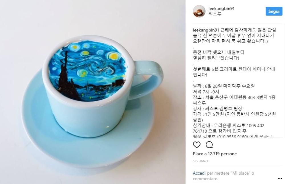 Un tempo i cappuccini erano soltanto un modo per rendere speciale la propria colazione, ma negli ultimi anni le cose stanno cambiando. Questa particolare bevanda, infatti, si presta bene ad essere decorata e tanti baristi si stanno riscoprendo artisti. Uno tra questi, in particolare, merita tutta la nostra attenzione: si chiama Lee Kang Bin ed è ormai una celebrità su Instagram perché riesce a trasformare il più semplice dei cappuccini in una vera e propria opere d’arte. Lo fa servendosi di coloranti, di un piccolissimo “pennello” ma soprattutto di tanto talento, pazienza e passione. Nella gallery vi mostriamo dieci sue speciali creazioni. Per la prima volta, per apprezzare un cappuccino, non vi servirà berlo: vi basterà guardarlo per assaporarne tutto il suo speciale sapore artistico.