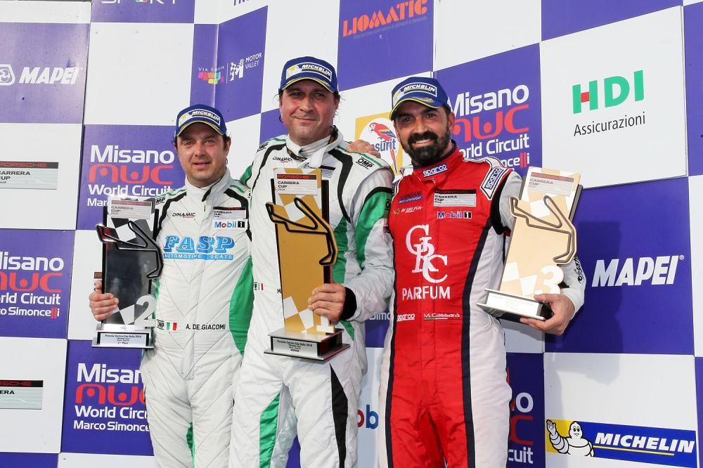 Nella Michelin Cup pollice rivolto verso l’alto per Alex De Giacomi (Dinamic Motorsport) nella prima corsa, in cui ha preceduto il mattatore della classe riservata ai gentlemen driver Marco Cassarà (Ghinzani Arco Motorsport – Centri Porsche di Roma) e il debuttante Livio Selva (Ebimotors – Centro Assistenza Porsche Cermenate). Copione diverso in Gara 2 con Marco Pellegrini (Dinamic) davanti a De Giacomi e Cassarà.