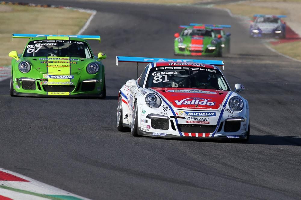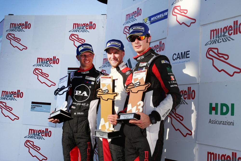 Alle spalle del francese troviamo il neo-diciottenne Mattia Drudi (Dinamic Motorsport – Centro Porsche Modena), il quale è parso tuttavia leggermente sotto tono nelle prove ufficiali, mentre sabato il romagnolo ha conquistato un quarto ed un terzo posto che lasciano i giochi aperti in ottica campionato (appena 11 punti da Ledogar). Qualche difficoltà è sopraggiunta anche per un altro pilota, Alessio Rovera (Ebimotors – Centro Porsche Verona), anche lui indietro nelle qualifiche, ma decisamente più veloce nelle due gare di oggi in cui ha collezionato un sesto ed un terzo posto.