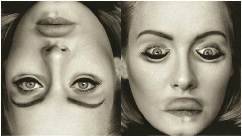 Se però girate l’immagine per “raddrizzare” il volto di Adele, l’effetto è davvero strano: bocca e occhi sono stati capovolti.