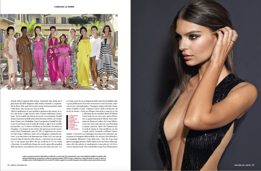 Allora il gradimento di una modella si giudicava dal numero di cover e dai cachet. E oggi? Social e serie tv hanno trasformato il panorama. Tra le modelle più famose dei social c’è sicuramente Kendall Jenner, la giovane modella americana diventata celebre con il reality show Al passo con i Kardashian. Dopo il programma, Kendall ha sfilato per le più famose case di moda del mondo e oggi è tra le modelle più popolari, con 15 milioni di follower su Facebook e 83 milioni su Instagram. A scatenare le più colorite discussioni sui social è sicuramente Emily Ratajkowski, nata nel 1991 in Inghilterra ma cresciuta a San Diego, California. Scatti osé su Instagram e polemiche piccanti. La scorsa estate si era lamentata per il fatto che il suo seno generoso le fosse di ostacolo nella carriera, i commenti non sono mancati. Le sue misure sono 88-61-86, per un’altezza di 170 cm. Emily è diventata «la modella più famosa dei social» grazie alla sensualità delle sue forme e non ammette che le sue curve siano ritoccate. Così, il mese scorso la top, protagonista della copertina di Madame Figaro, post pubblicazione ha scritto un’invettiva contro la rivista, colpevole di aver «photoshoppato» l’immagine rimpicciolendole chiaramente le labbra e il seno. «Ognuno è unico e bello a modo suo», ha scritto la 26enne. «Tutte noi abbiamo insicurezze a causa di ciò che ci allontana da uno standard ideale di bellezza. Come molte tra voi, cerco tutti i giorni di lavorare su questa mancanza di fiducia. Sono estremamente delusa nel vedere che le mie labbra e i miei seni siano stati ritoccati con Photoshop su questa copertina. Spero che l’industria della moda la smetta di voler modificare ciò che ci rende uniche, iniziando a celebrare l’individualità». L’invettiva con l’immagine ritoccata per la copertina è stata postata su Instagram dalla modella e ha ottenuto oltre 440mila like (Instagram: @emrata). Come darle torto… Pare che il suo video girato in spiaggia assieme a Bella Hadid in succinti bikini abbia registrato oltre due milioni di visualizzazioni in una sola ora. Un bel record, in tempi di social. Che cosa direbbe lo specchio di Biancaneve?