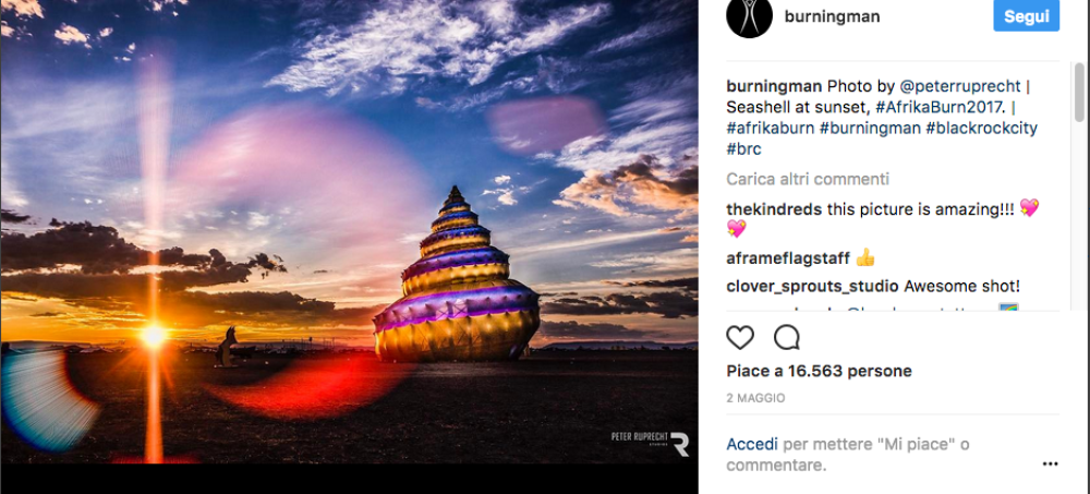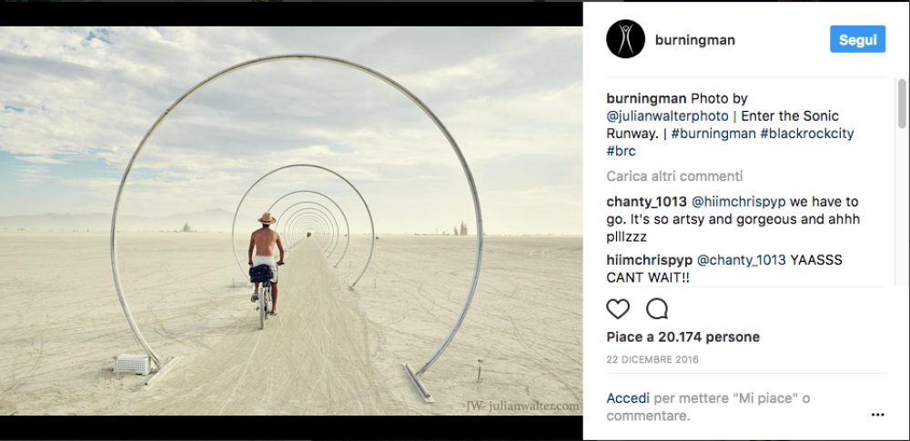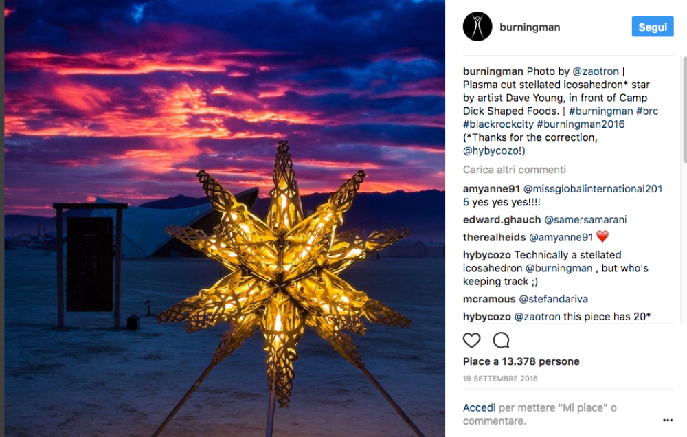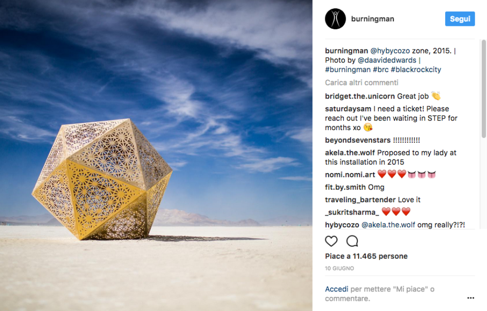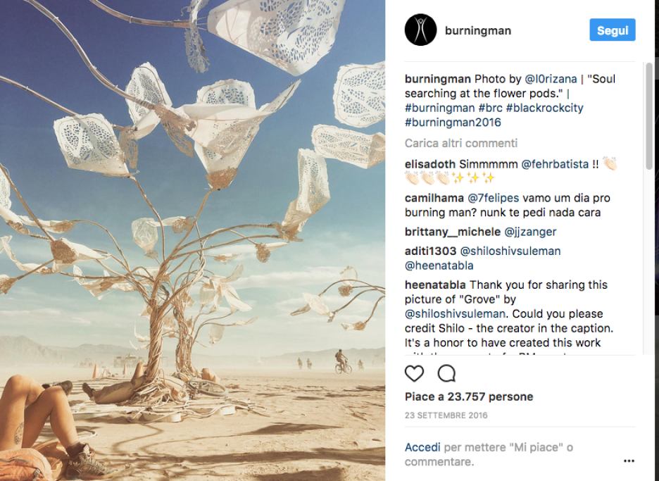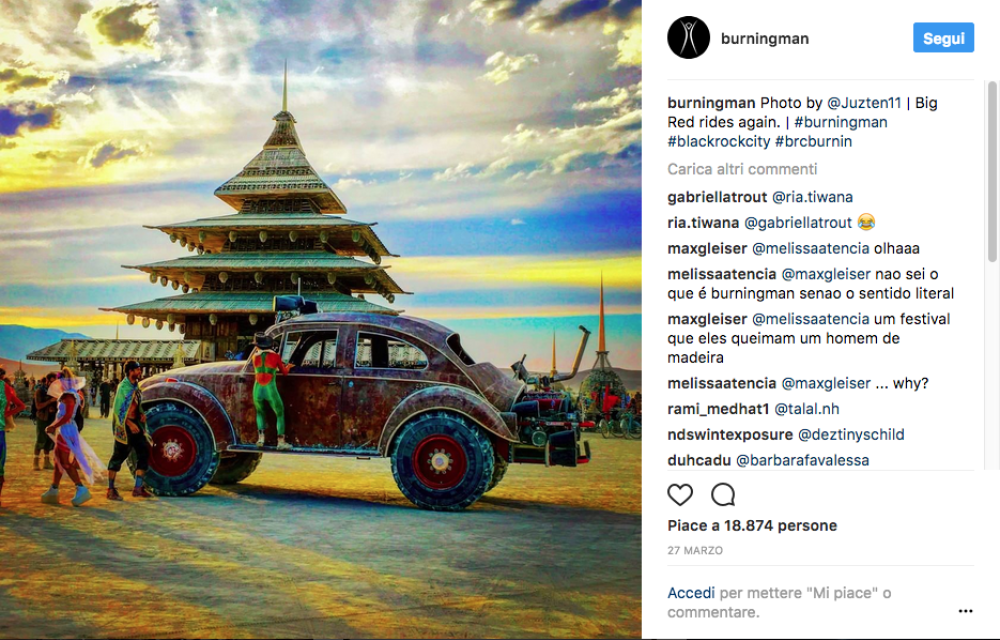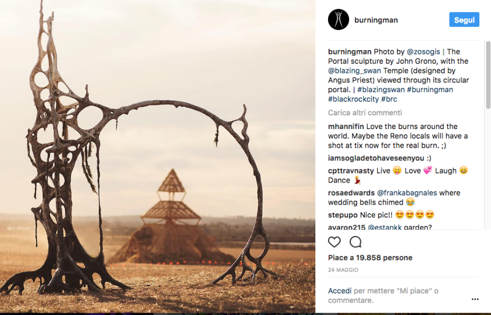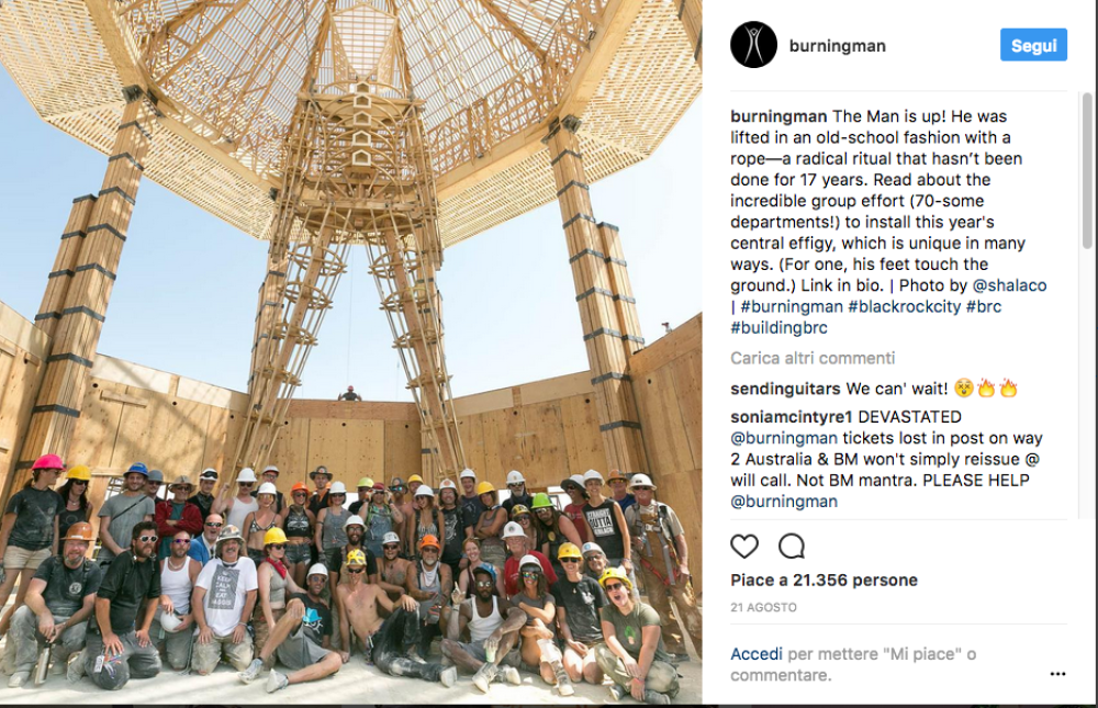 Era il 1991 quando un gruppo di amici diede vita al Burning Man, un festival di performance artistiche libere, nel deserto del Nevada. Chiamato Burning Man dal rito finale dell’happening, che vede il rogo di un enorme fantoccio, si svolge ormai ogni anno con un successo sempre maggiore. Per otto giorni Black Rock City, una città che esiste solo per la durata del Burning Man, nel Deserto Black Rock in Nevada, si popola di artisti, performer, curiosi. Ciascuno porta con sé la propria attrezzatura da campeggio, cibo e acqua, perché al Burning Man sono in vendita solo ghiaccio e caffè e tutto il resto si baratta. Il Burning Man 2017 si è concluso il 4 settembre. Ecco alcune delle foto più spettacolari.
