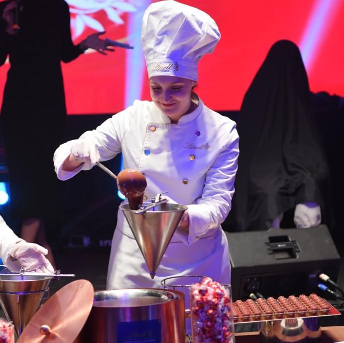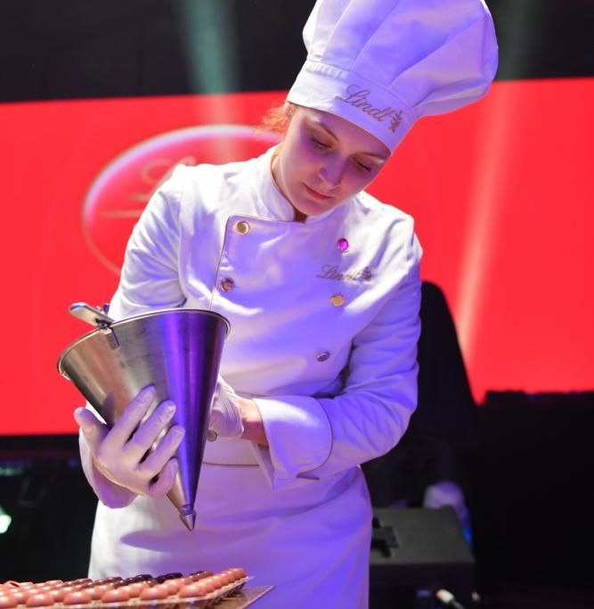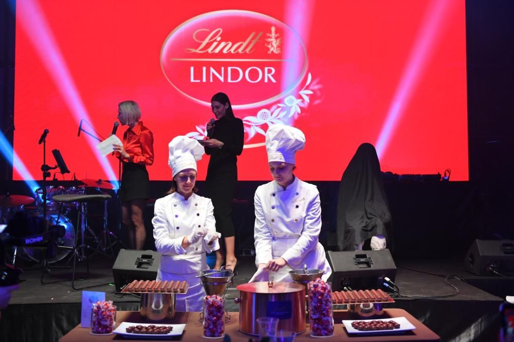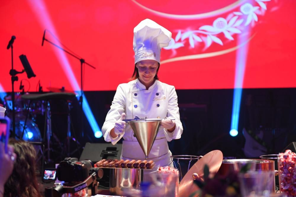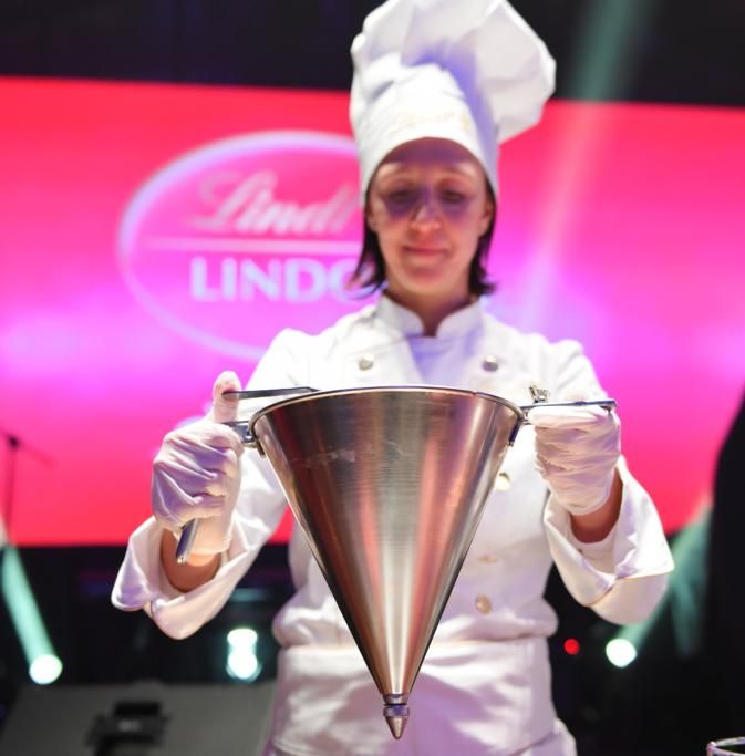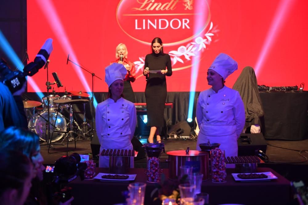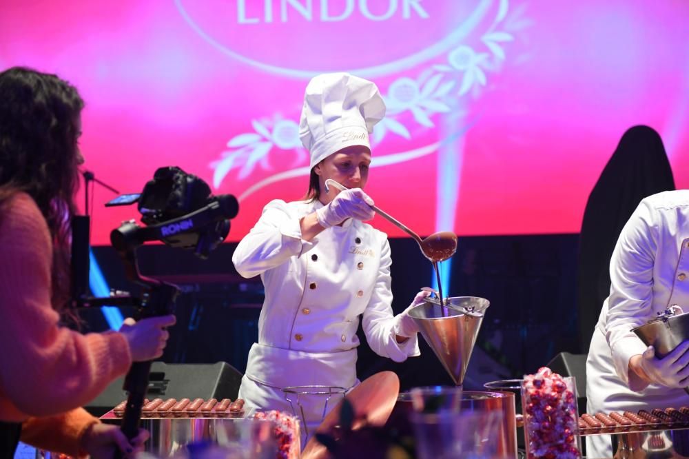 Le due Maîtres Chocolatiers hanno raccontato così il cooking show Lindor che in pochi minuti ha conquistato la sala: “L’attività consiste nella realizzazione live delle iconiche praline lindor nella ricetta al latte: riempiamo il guscio di cioccolato al latte con il ripieno irresistibilmente scioglievole a base di cioccolato al latte. Mostriamo a mano ciò che viene fatto in larga scala. Guidiamo nell’assaggio, lasciando poi alla persona il suo momento di estasi…”.