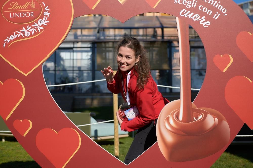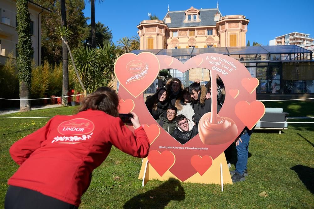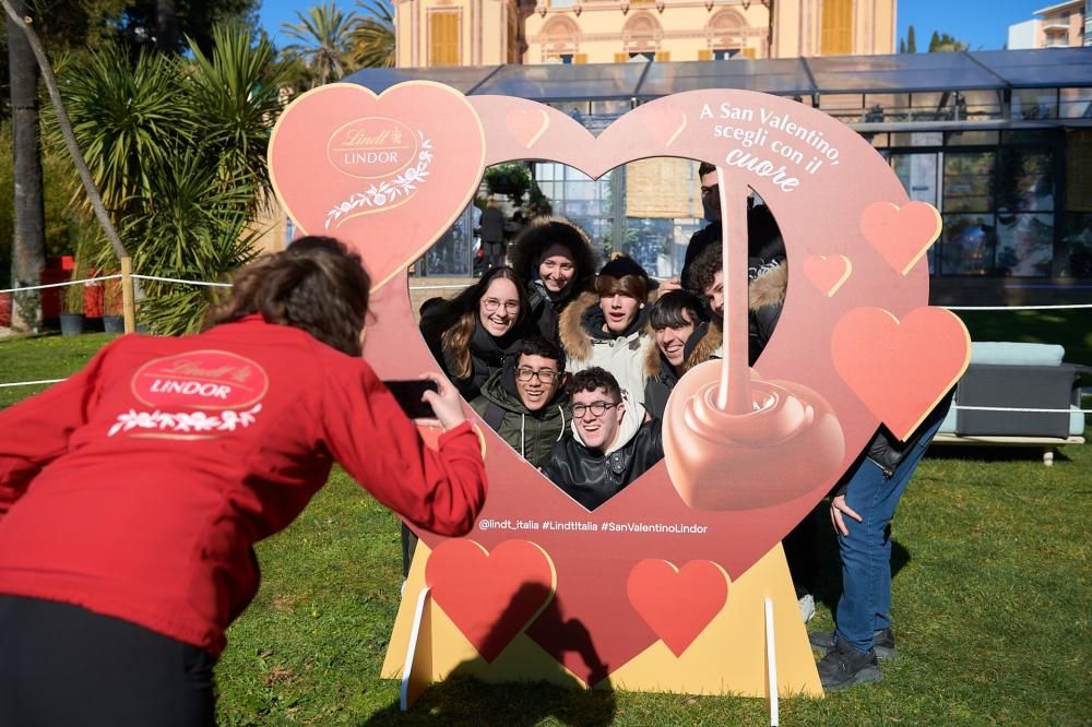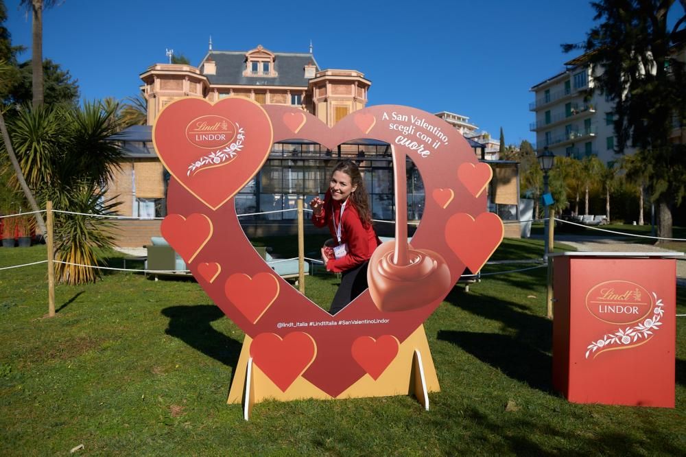Per celebrare la festa degli innamorati e accompagnarci dal Festival di Sanremo a San Valentino, Lindt ha messo a disposizione un romanticissimo photobooth nel giardino della villa. Qui il pubblico ha potuto divertirsi a scattare foto all’interno di una grande cornice a forma di cuore e ha potuto mettersi in gioco con pronostici e domande che misuravano sia i gusti musicali che l’affinità della coppia. A tutti i partecipanti ovviamente tanti Lindor, l’iconica pralina dall’incarto rosso, con il suo guscio croccante che racchiude un ripieno dall’irresistibile scioglievolezza!