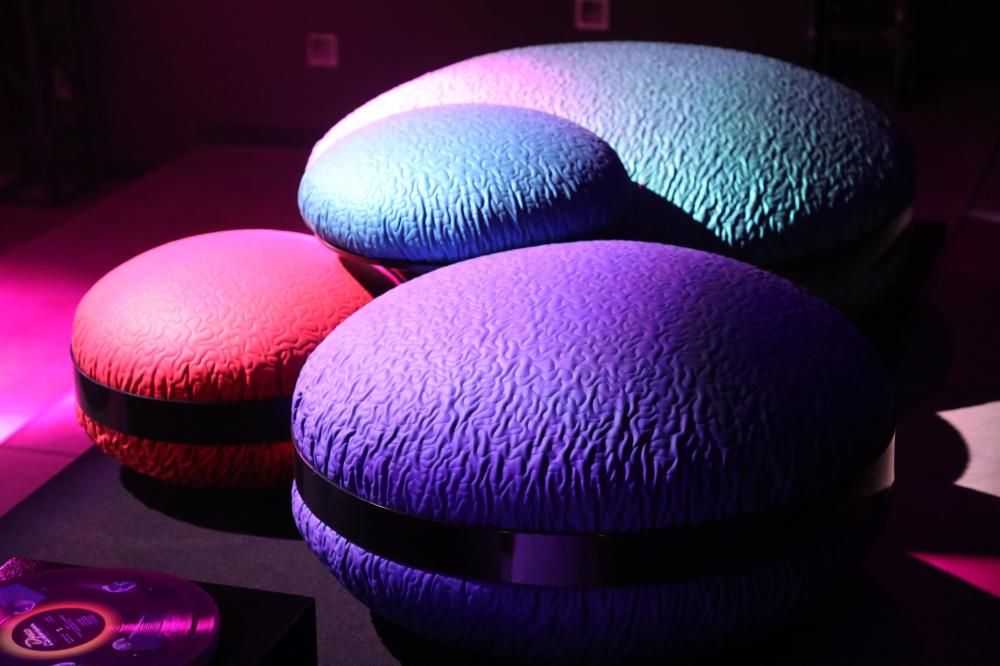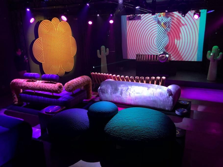 Di giorno e di notte per una settimana, in una sala discreta della Mediateca Santa Teresa, Charley Vezza , patron di Gufram o come preferisce farsi chiamare lui, Global Creative Orchestrator, ha ricreato una discoteca visionaria per ambientare i nuovi pezzi proposti dall’azienda.