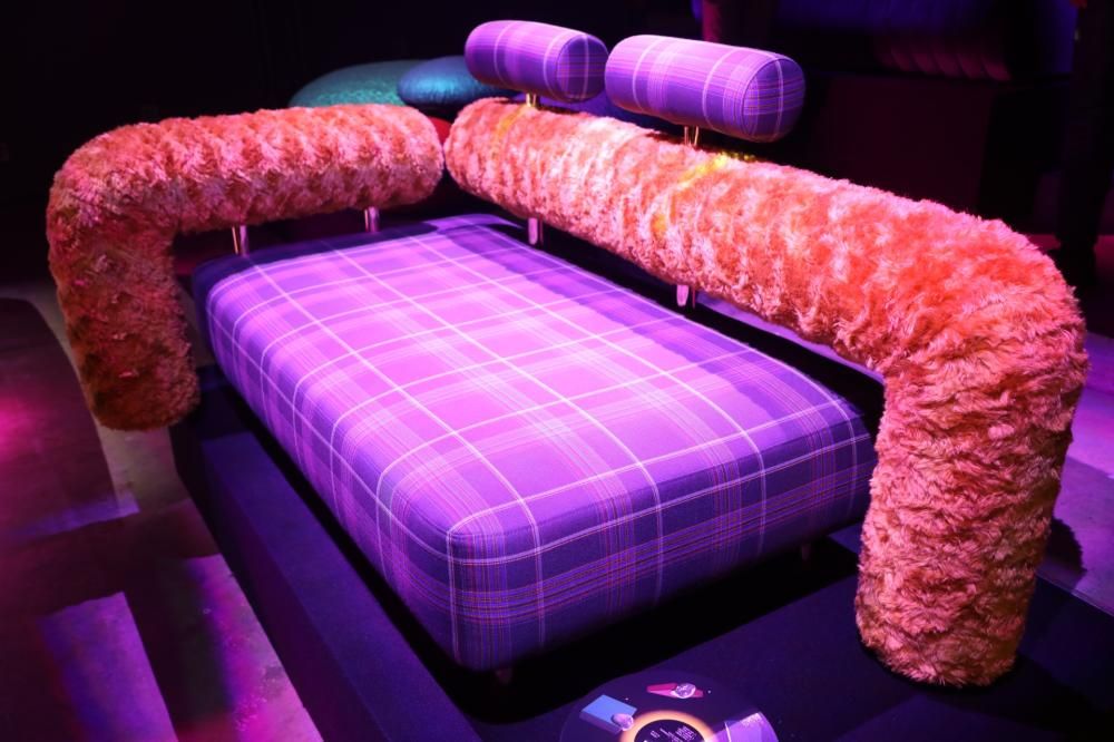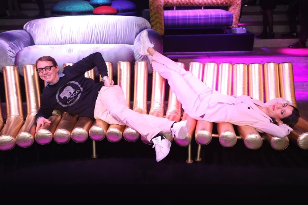 Ricercando negli archivi dell’azienda e trascorrendo qualche serata in diversi club (un modo piacevole per esaminare l’argomento), i designers hanno proposto una serie di sedute, tappeti e cabinet contaminati dal mondo disco psichedelico anni 70: tutti i pezzi infatti sono glamour, super sexy e coloratissimi, all’insegna dell’umorismo e della bellezza, come i vizi e i sogni che si scatenano durante la notte.