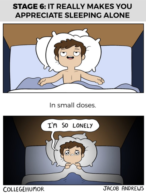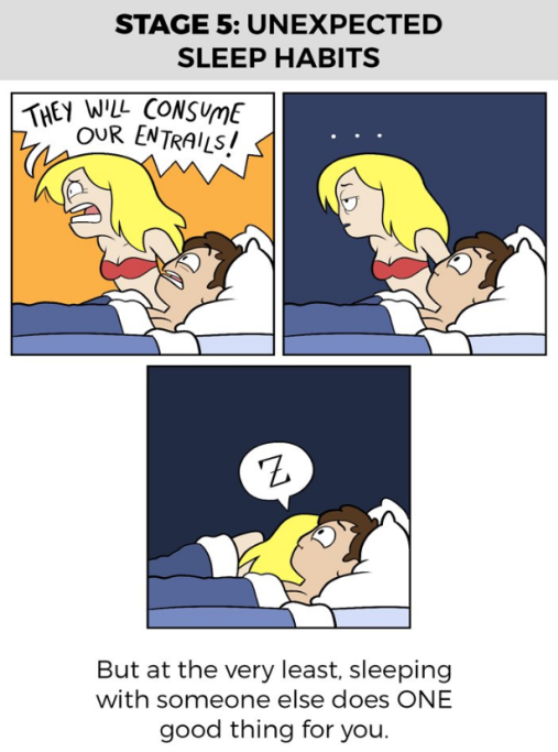 Dormire con la propria metà. Ecco le 6 fasi da superare nelle divertenti vignette di Jacob Andrews