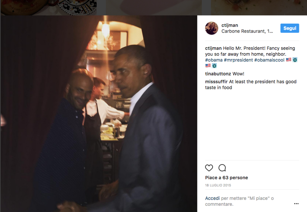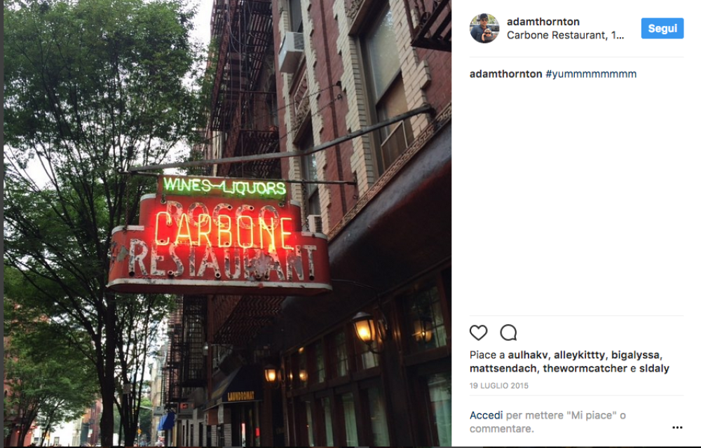 Un menù tricolore, pastasciutte deliziose e tanta tanta italianità: è quel che si trova da Carbone, ristorante di New York (Si trova a SoHo) amato da personaggi come George Clooney (e sua moglie Amal, che con il suo fisico filiforme può ben concedersi qualche prelibatezza nostrana) e Barack Obama. Ma tra gli appassionati estimatori del locale e delle sue ghiottonerie sono anche Chelsea Clinton, figlia dell’ex presidente George e di Hillary, e Taylor Swift.