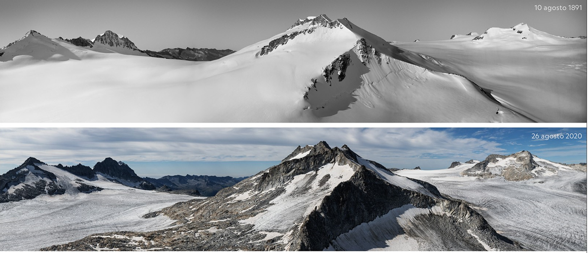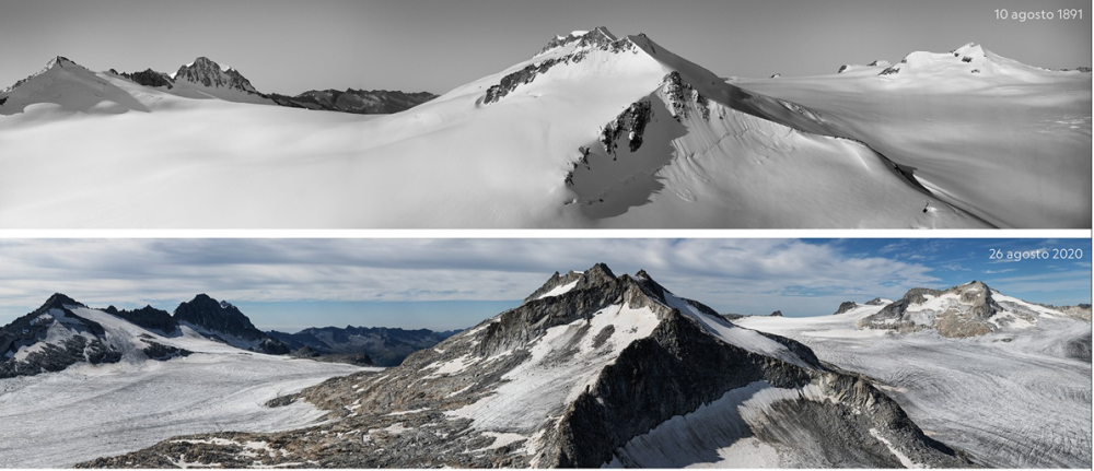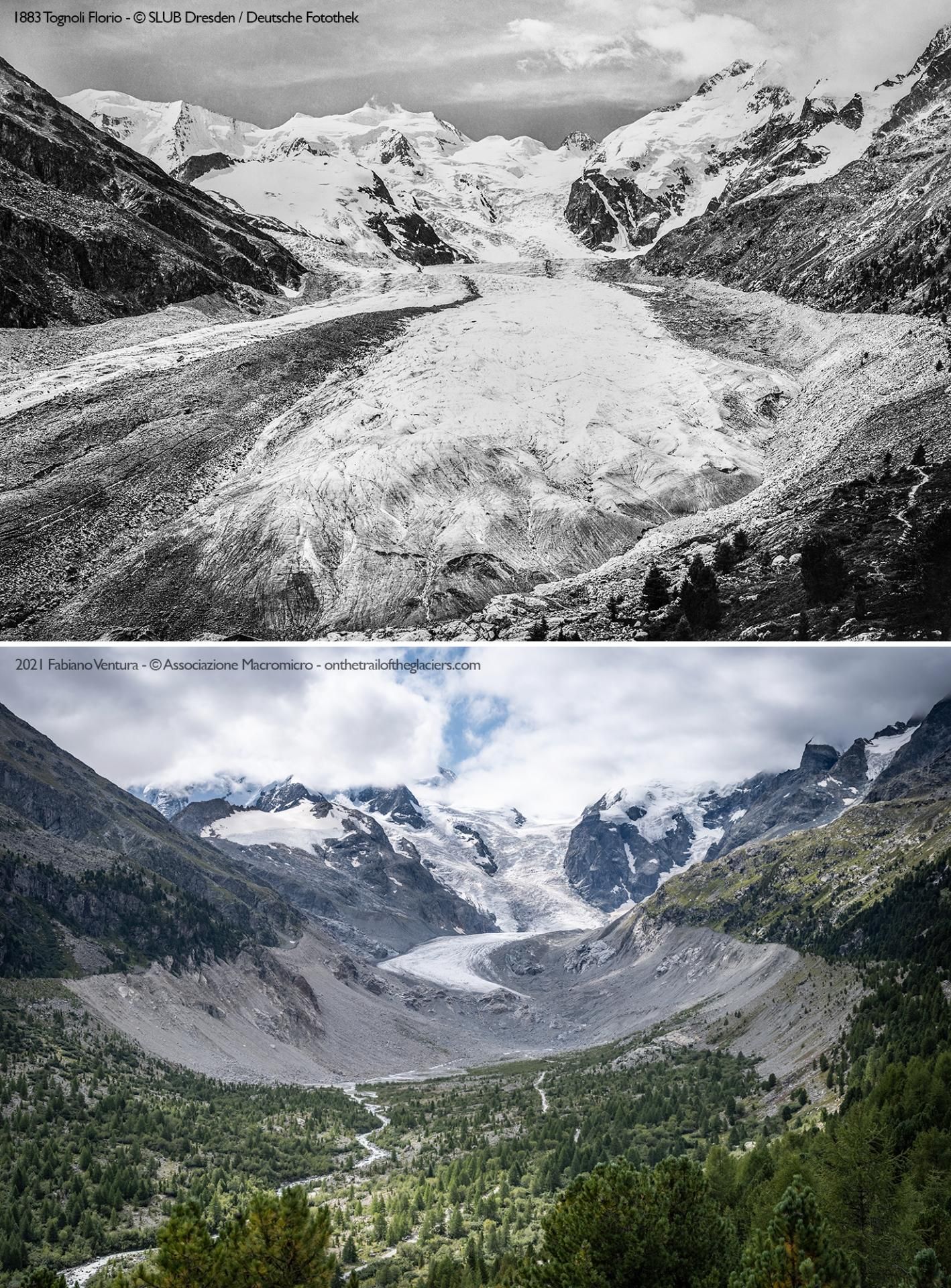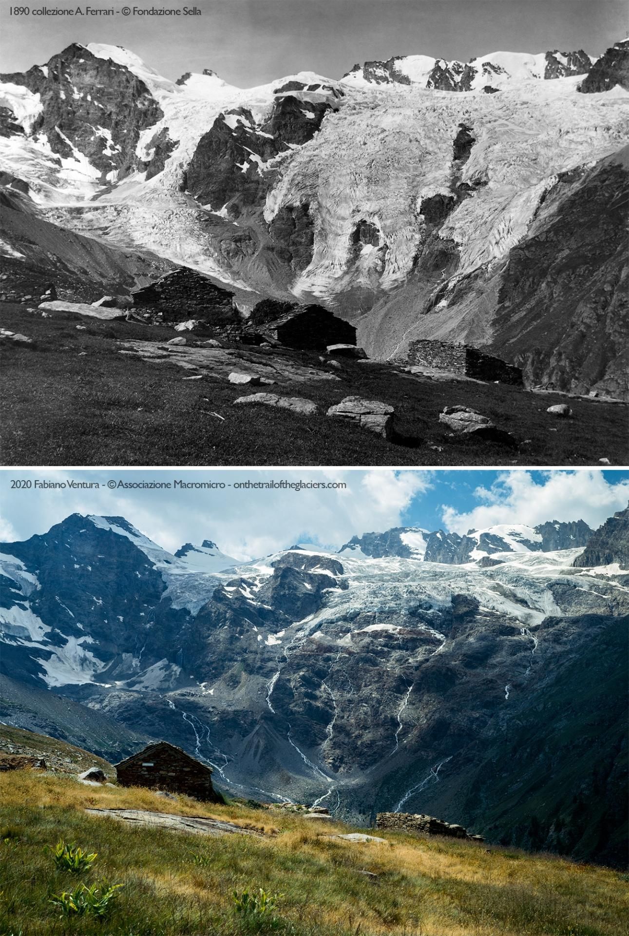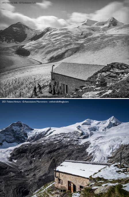 La mostra fa vedere in modo inequivocabile quali siano gli effetti del riscaldamento globale sugli ecosistemi, mettendo a confronto immagini contemporanee dei ghiacciai e le identiche inquadrature (immortalate dai grandi maestri del passato) prima della crisi climatica.