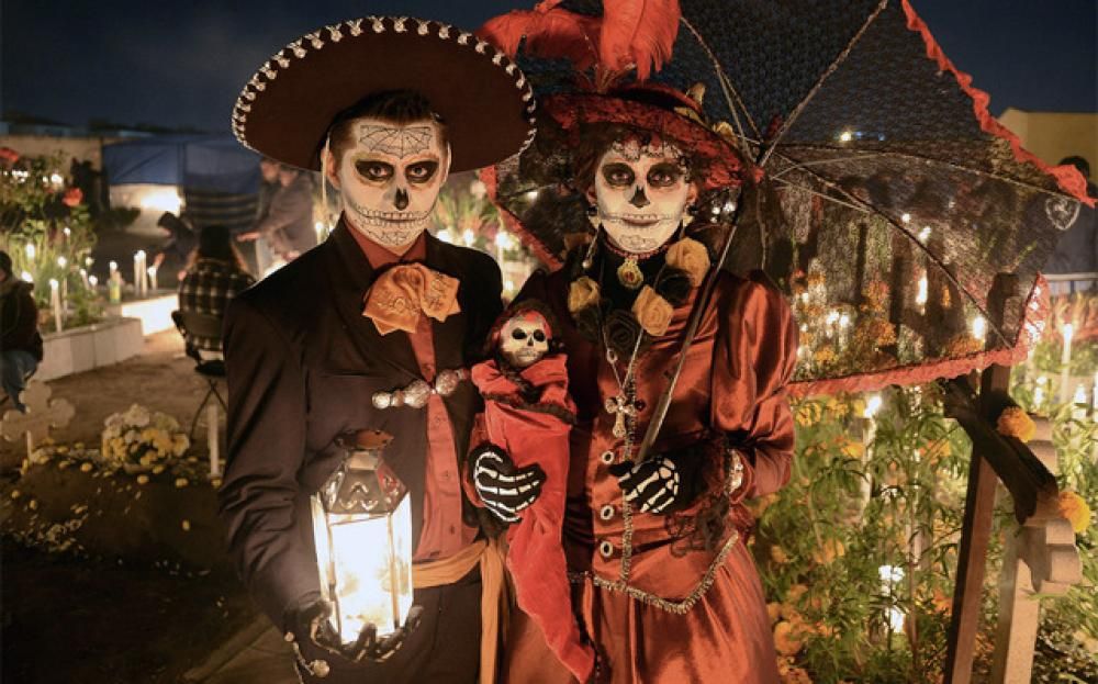 Nel giorno dei morti si scaccia il lutto e la tristezza, c’è solo la malinconia di non poter vivere più assieme ai propri cari. Una festa che è stata dichiarata Patrimonio culturale dell’umanità dall’Unesco nel 2008, e che affonda le sue radici in epoca precolombiana: per gli Atzechi la morte era un momento di rinascita, di cambiamento, un viaggio da cui dopo un certo periodo di tempo sarebbe stato possibile tornare. La prossima settimana si terrà la grande parata in cui ci si traveste truccandosi da “Sua maestà la morte” o come viene chiamata, “La Catrina”, personaggio rappresentato come uno scheletro di donna. La Calavera Catrina ( che significa ‘Scheletro elegante’, ‘Teschio elegante’) è stata creata nei primi anni del 900 dal vignettista Jose Guadalupe Posada, famoso per la sua acutezza satirica e l’impegno politico. E gli abiti colorati che indossa la Catrina sono opera del muralista Diego Rivera, il marito di Frida Kahlo. Il tema dominante della festa è il “teschio” ma tutto colorato, con arabeschi e fiorellini, che non fa paura, anzi è un bell’oggetto! Riceverne uno in dono con inciso sopra il proprio nome è di buon augurio. Dappertutto nelle città messicane fiori arancioni di zempoaxochitl colorano piazze, città, strade: sono i fiori che guideranno le anime verso il ritorno a casa insieme all’allestimento degli altari casalinghi e soprattutto verso i cimiteri che restano pieni di gente e di luci per tutta la notte con le tombe di famiglia decorate de lumini e fiori e cibi e dolciumi. El Dia de Muertos è una grande festa da vedere almeno una volta nella vita, dal 1 al 2 novembre. Molto meglio di Halloween che ormai ha fatto il suo tempo ed è un carnevale di paura!