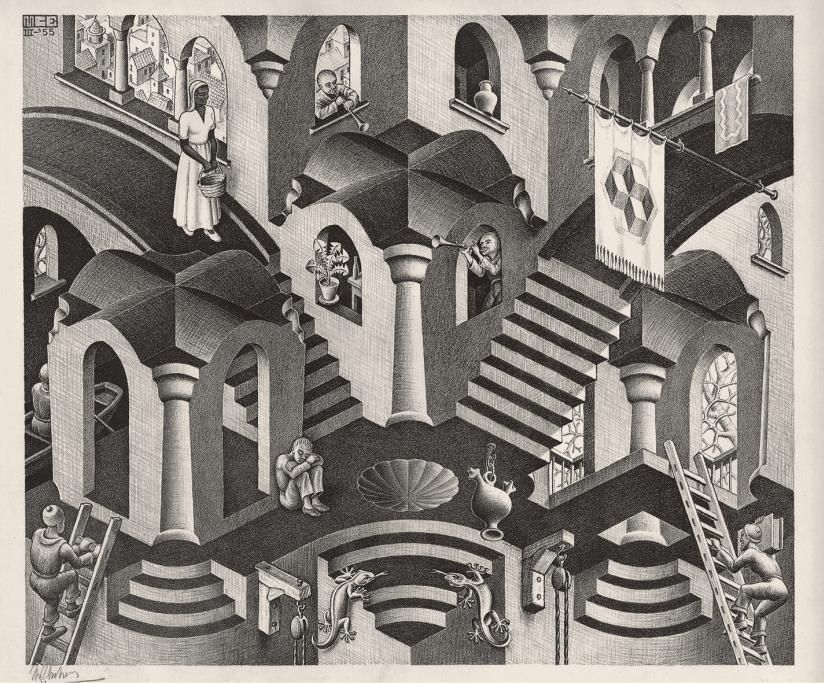 Catania ospita per la prima volta, nei suggestivi spazi del Palazzo della Cultura (dal 19 marzo al 17 settembre), un’emblematica mostra dedicata al maestro olandese Maurits Cornelis Escher, amatissimo dal grande pubblico: oltre 140 opere, tra cui le celebri Mano con sfera riflettente, Vincolo d’unione, Metamorfosi I e Giorno e notte, in un percorso espositivo che illustra i vari aspetti della produzione dell’artista, con particolare riguardo alle creazioni ispirate dal paesaggio siciliano. Escher infatti soggiornò nell’isola tra il 1928 e il 1936 e la rassegna offre un’inedita selezione delle opere influenzate dai paesaggi e dalle atmosfere siciliane. Escher era particolarmente attratto dai luoghi eccentrici, solitari e sperduti, che interpretava e rendeva con il suo ineguagliabile tocco grafico, basato su elementi percettivi bidimensionali e tridimensionali, assemblati secondo leggi geometriche e matematiche. Il risultato è un affascinante mondo fantastico, che pur nel rispetto delle più rigorose norme prospettiche, apre nuovi orizzonti visivi e interpretativi.
